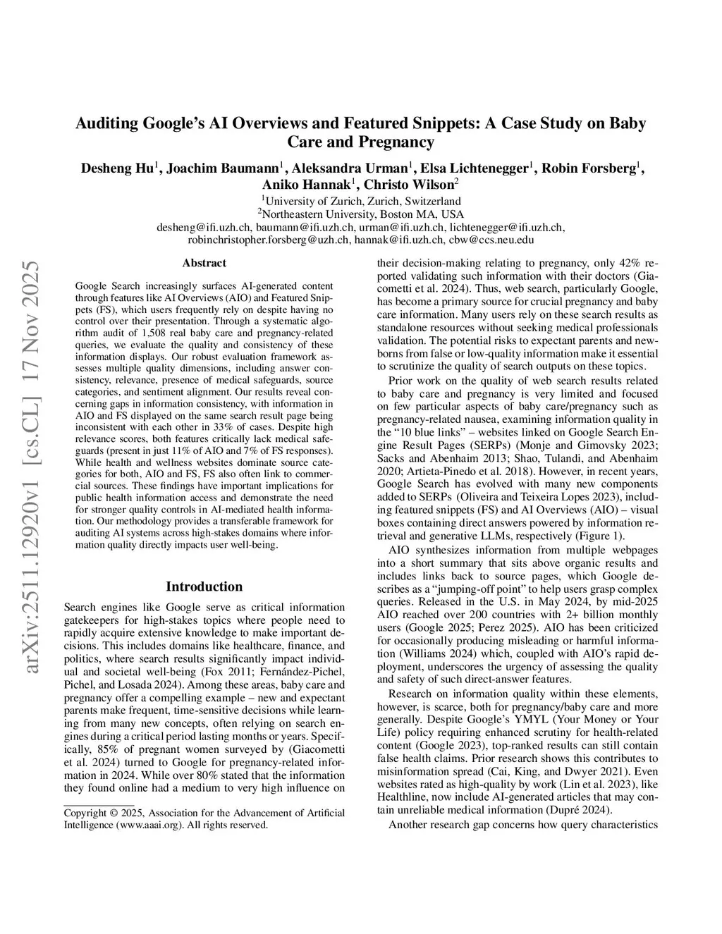 Auditing Google's AI Overviews and Featured Snippets: A Case Study on Baby Care and Pregnancy