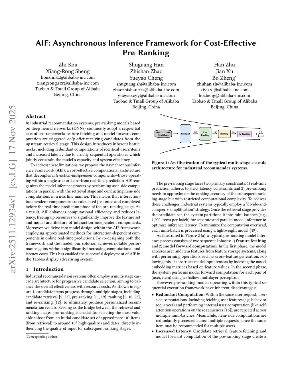 AIF: Asynchronous Inference Framework for Cost-Effective Pre-Ranking