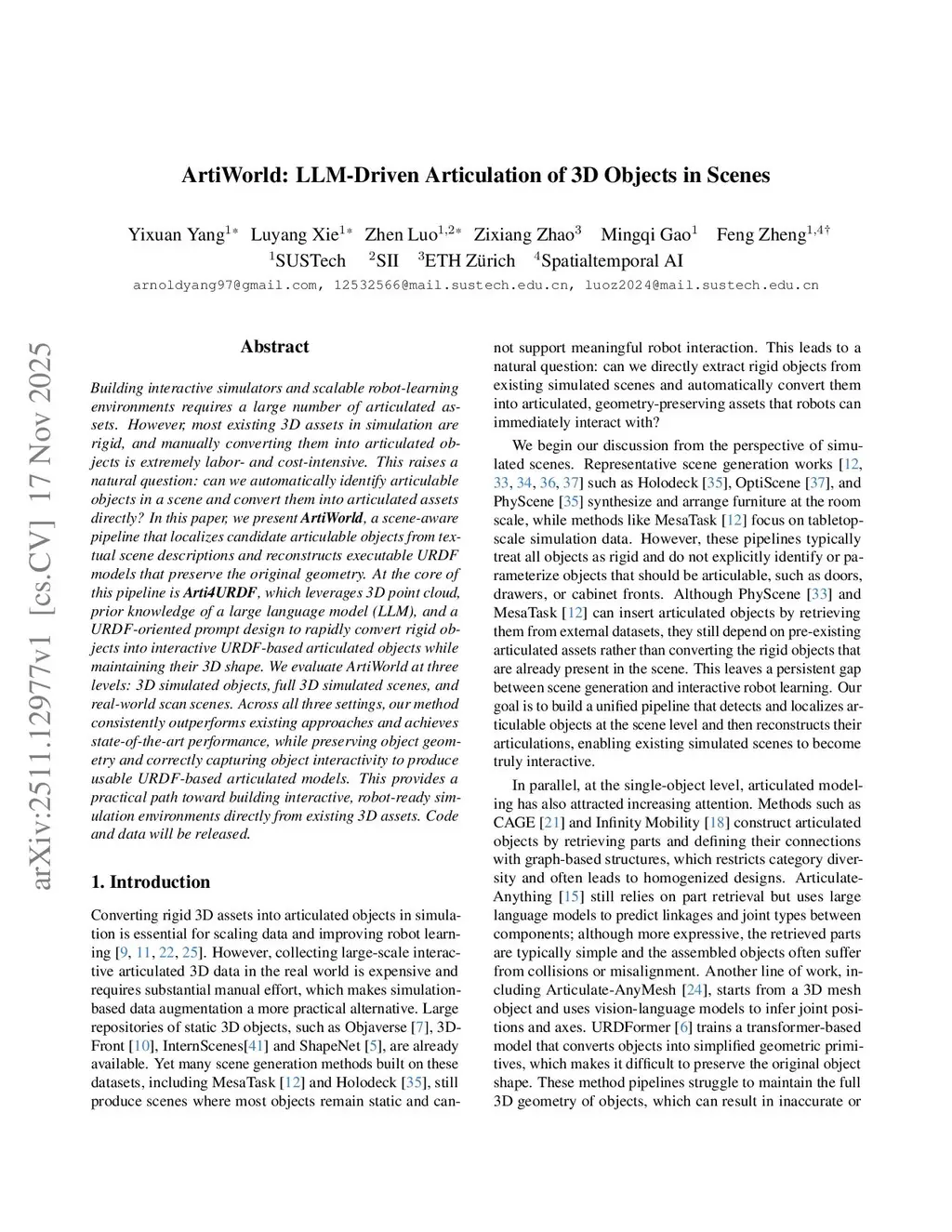 Building interactive simulators and scalable robot-learning environments requires a large number of articulated assets. However, most existing 3D assets in simulation are rigid, and manually converting them into articulated objects is extremely labor- and cost-intensive. This raises a natural question: can we automatically identify articulable objects in a scene and convert them into articulated assets directly? In this paper, we present ArtiWorld, a scene-aware pipeline that localizes candidate articulable objects from textual scene descriptions and reconstructs executable URDF models that preserve the original geometry. At the core of this pipeline is Arti4URDF, which leverages 3D point cloud, prior knowledge of a large language model (LLM), and a URDF-oriented prompt design to rapidly convert rigid objects into interactive URDF-based articulated objects while maintaining their 3D shape. We evaluate ArtiWorld at three levels: 3D simulated objects, full 3D simulated scenes, and real-world scan scenes. Across all three settings, our method consistently outperforms existing approaches and achieves state-of-the-art performance, while preserving object geometry and correctly capturing object interactivity to produce usable URDF-based articulated models. This provides a practical path toward building interactive, robot-ready simulation environments directly from existing 3D assets. Code and data will be released.