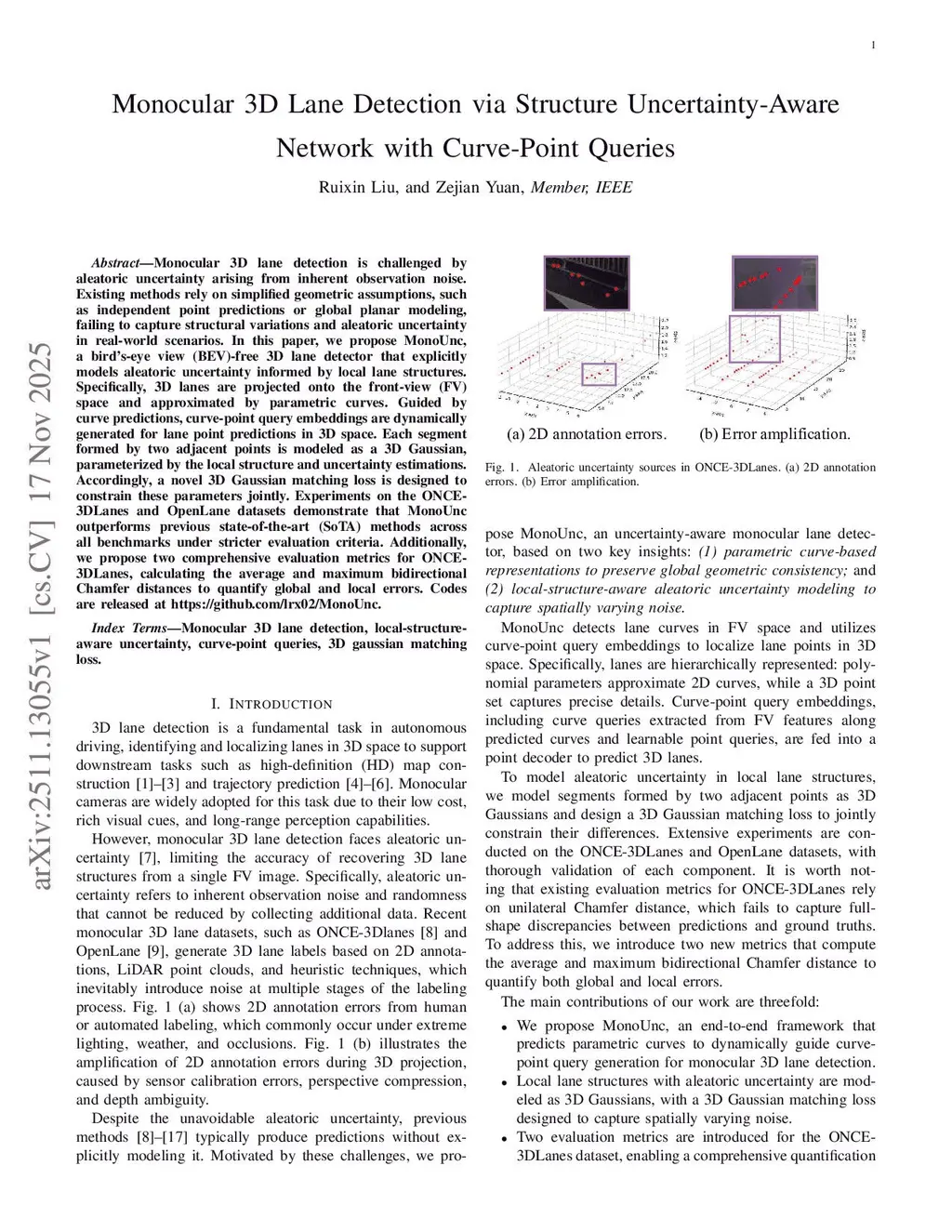 Monocular 3D Lane Detection via Structure Uncertainty-Aware Network with Curve-Point Queries