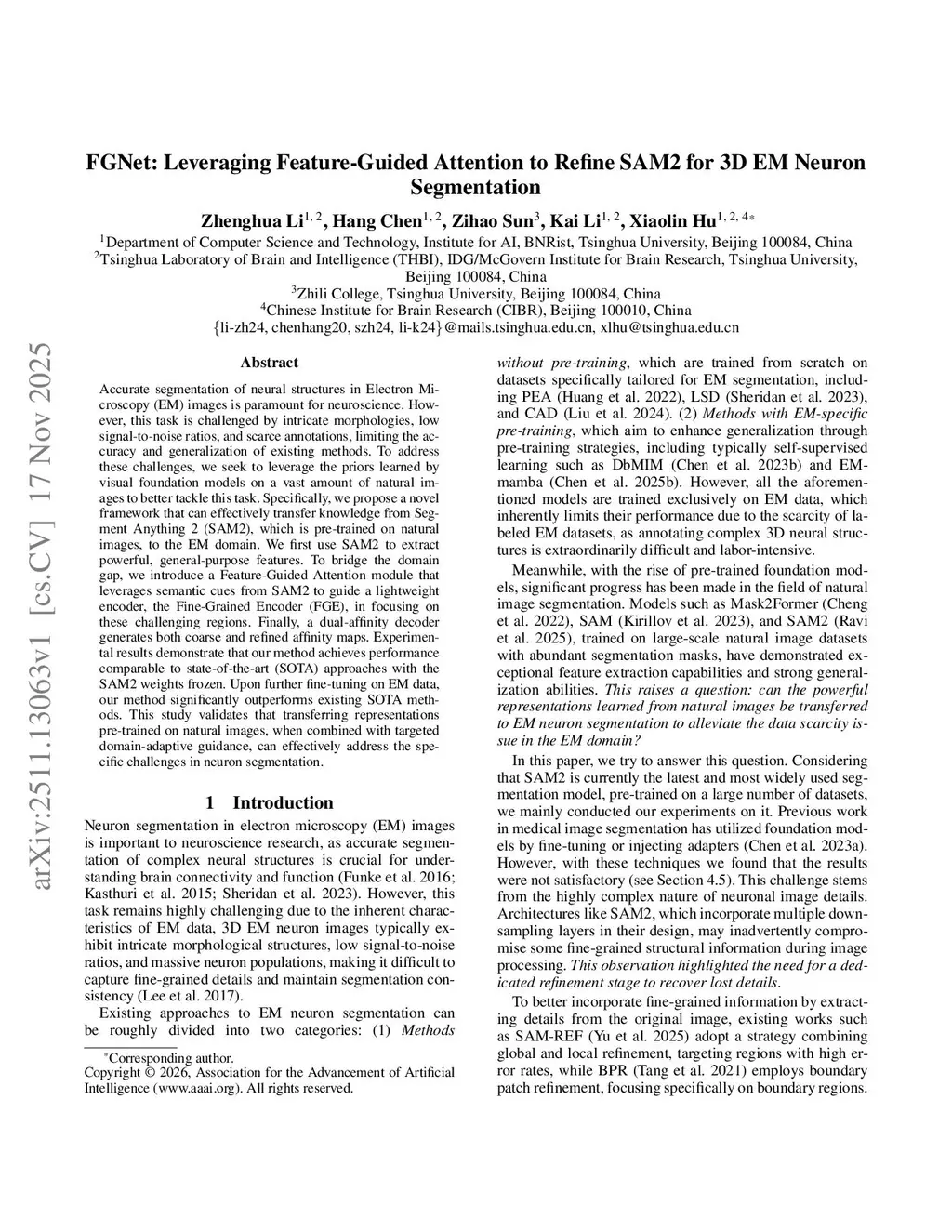 FGNet: Leveraging Feature-Guided Attention to Refine SAM2 for 3D EM Neuron Segmentation