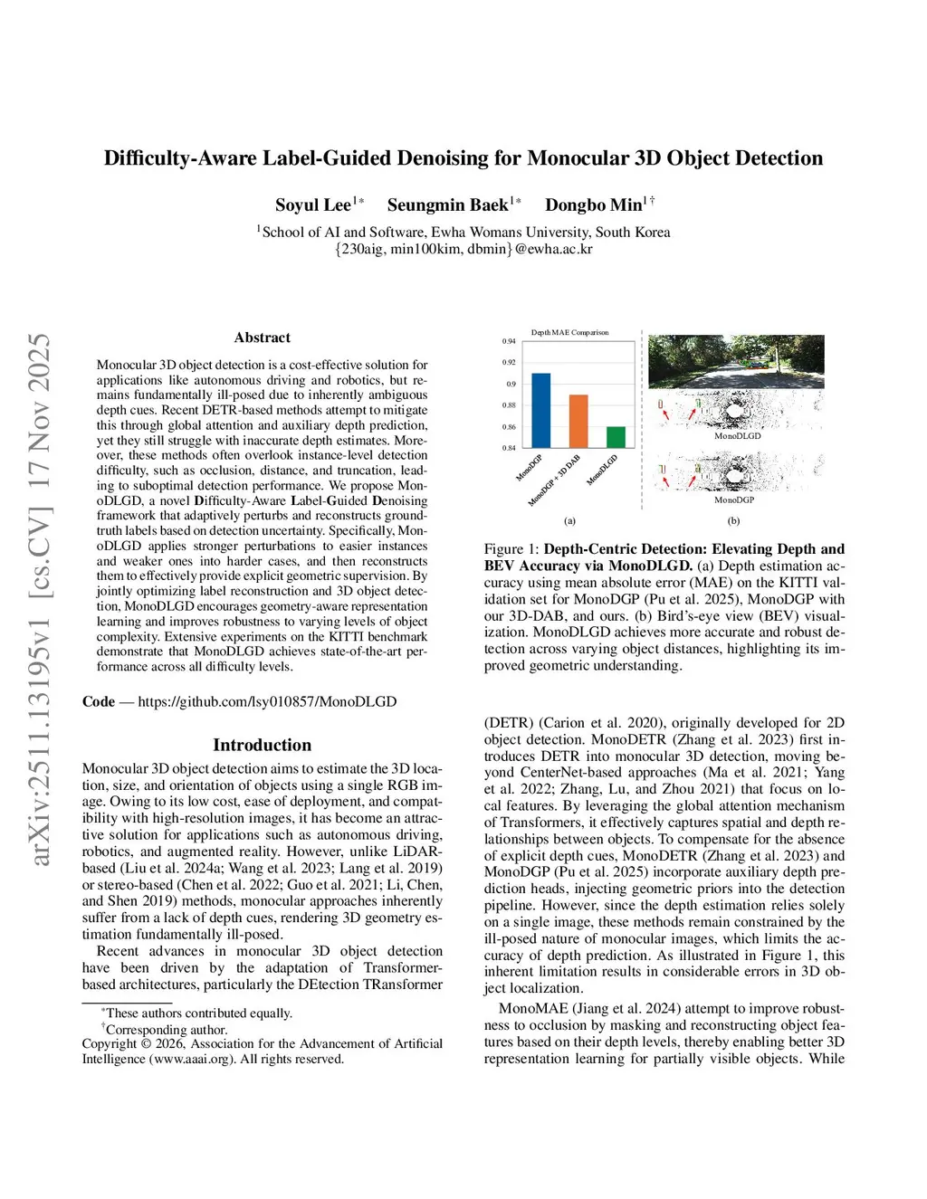 Difficulty-Aware Label-Guided Denoising for Monocular 3D Object Detection