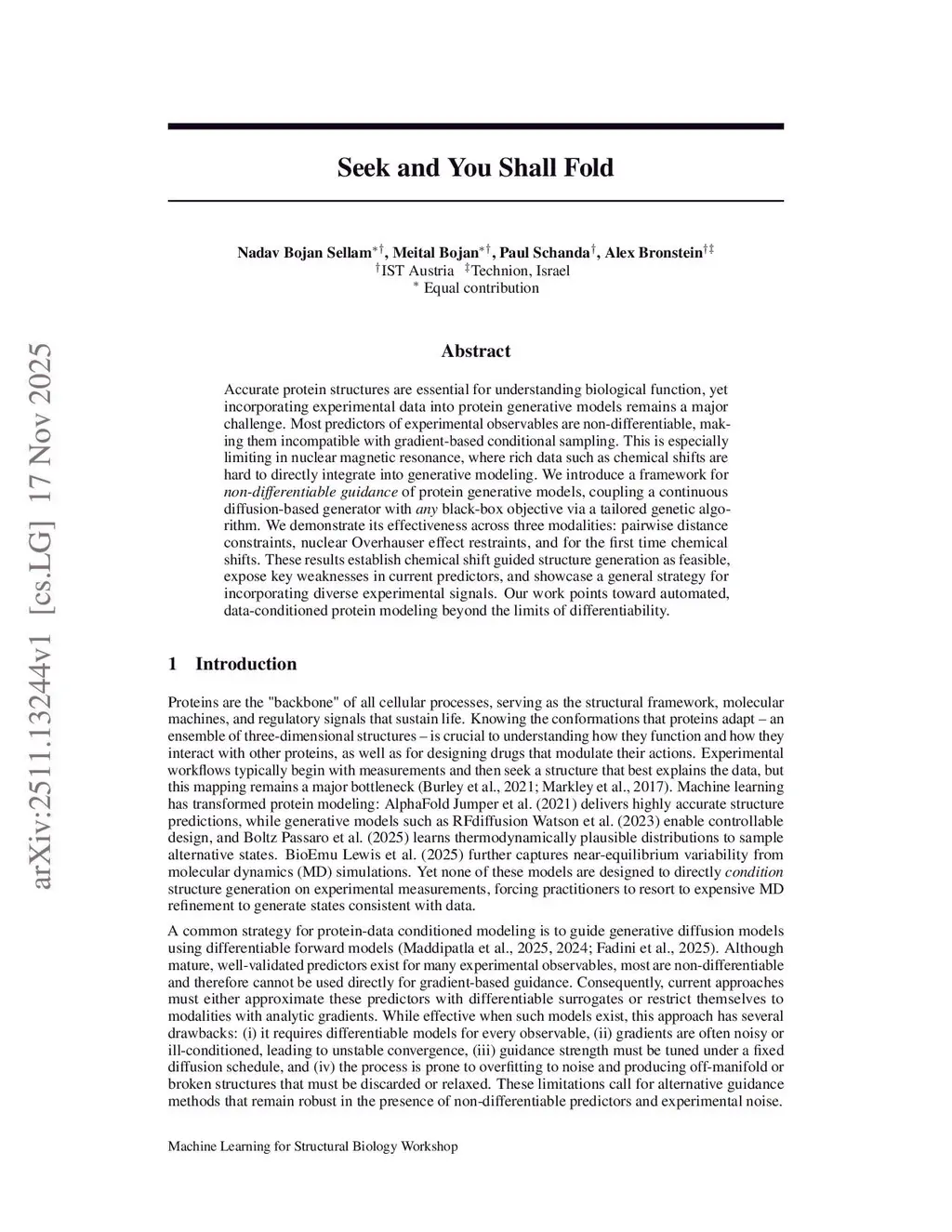 Accurate protein structures are essential for understanding biological function, yet incorporating experimental data into protein generative models remains a major challenge. Most predictors of experimental observables are non-differentiable, making them incompatible with gradient-based conditional sampling. This is especially limiting in nuclear magnetic resonance, where rich data such as chemical shifts are hard to directly integrate into generative modeling. We introduce a framework for non-differentiable guidance of protein generative models, coupling a continuous diffusion-based generator with any black-box objective via a tailored genetic algorithm. We demonstrate its effectiveness across three modalities: pairwise distance constraints, nuclear Overhauser effect restraints, and for the first time chemical shifts. These results establish chemical shift guided structure generation as feasible, expose key weaknesses in current predictors, and showcase a general strategy for incorporating diverse experimental signals. Our work points toward automated, data-conditioned protein modeling beyond the limits of differentiability.