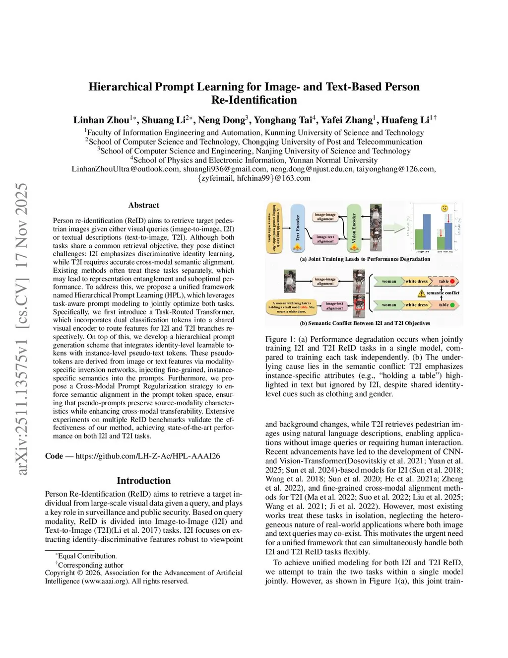 Hierarchical Prompt Learning for Image- and Text-Based Person Re-Identification
