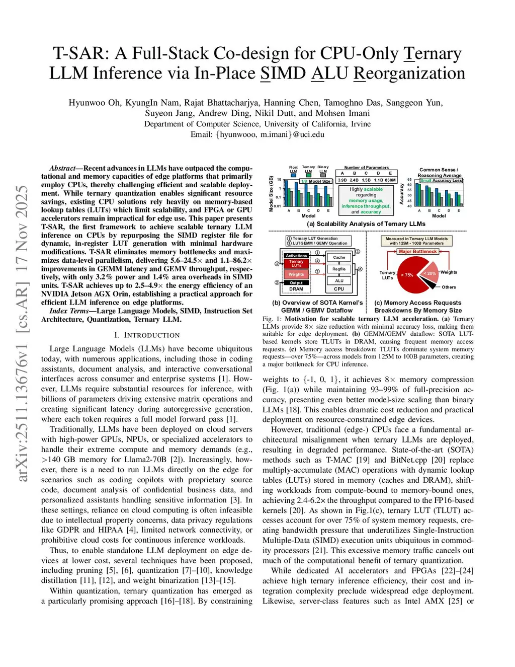 T-SAR: A Full-Stack Co-design for CPU-Only Ternary LLM Inference via In-Place SIMD ALU Reorganization