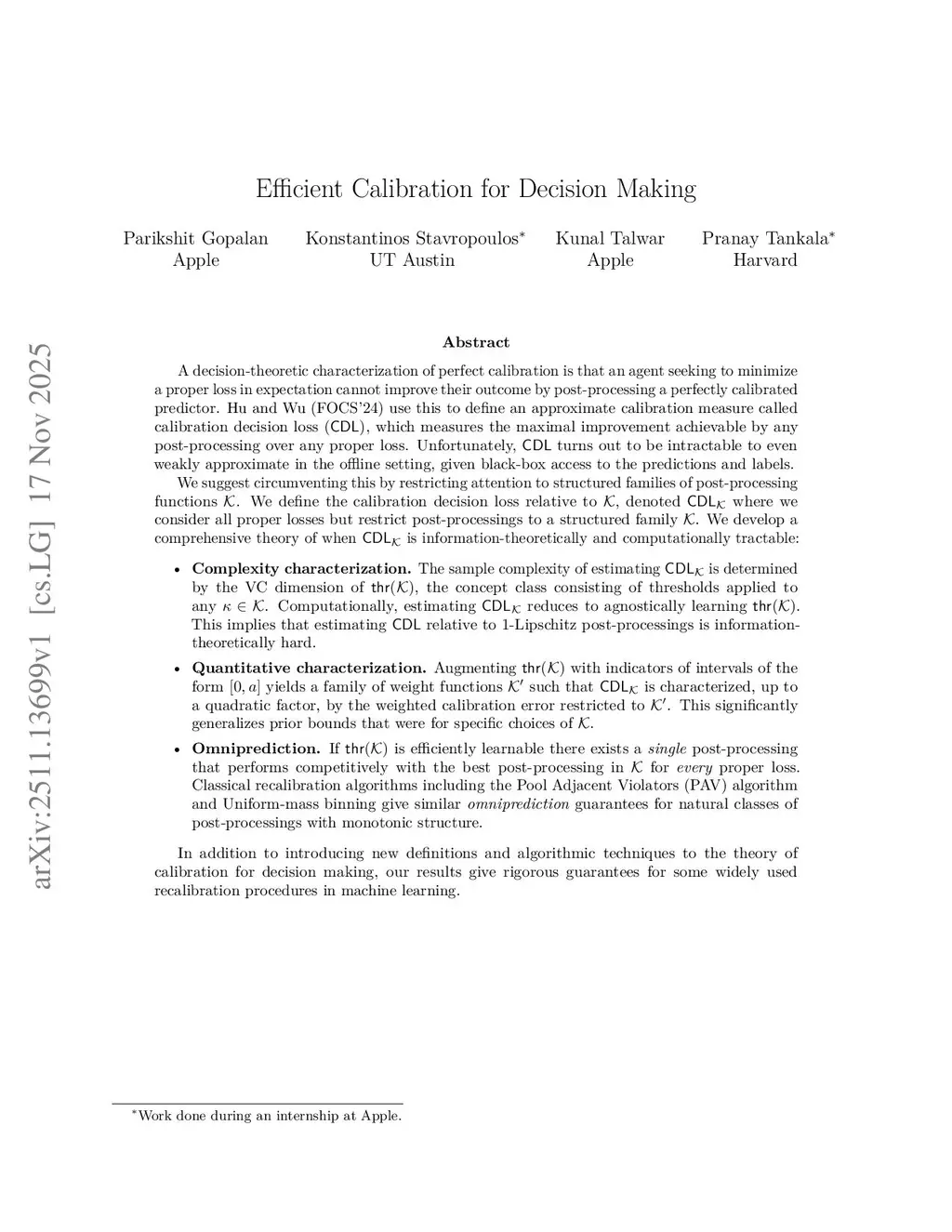 Efficient Calibration for Decision Making