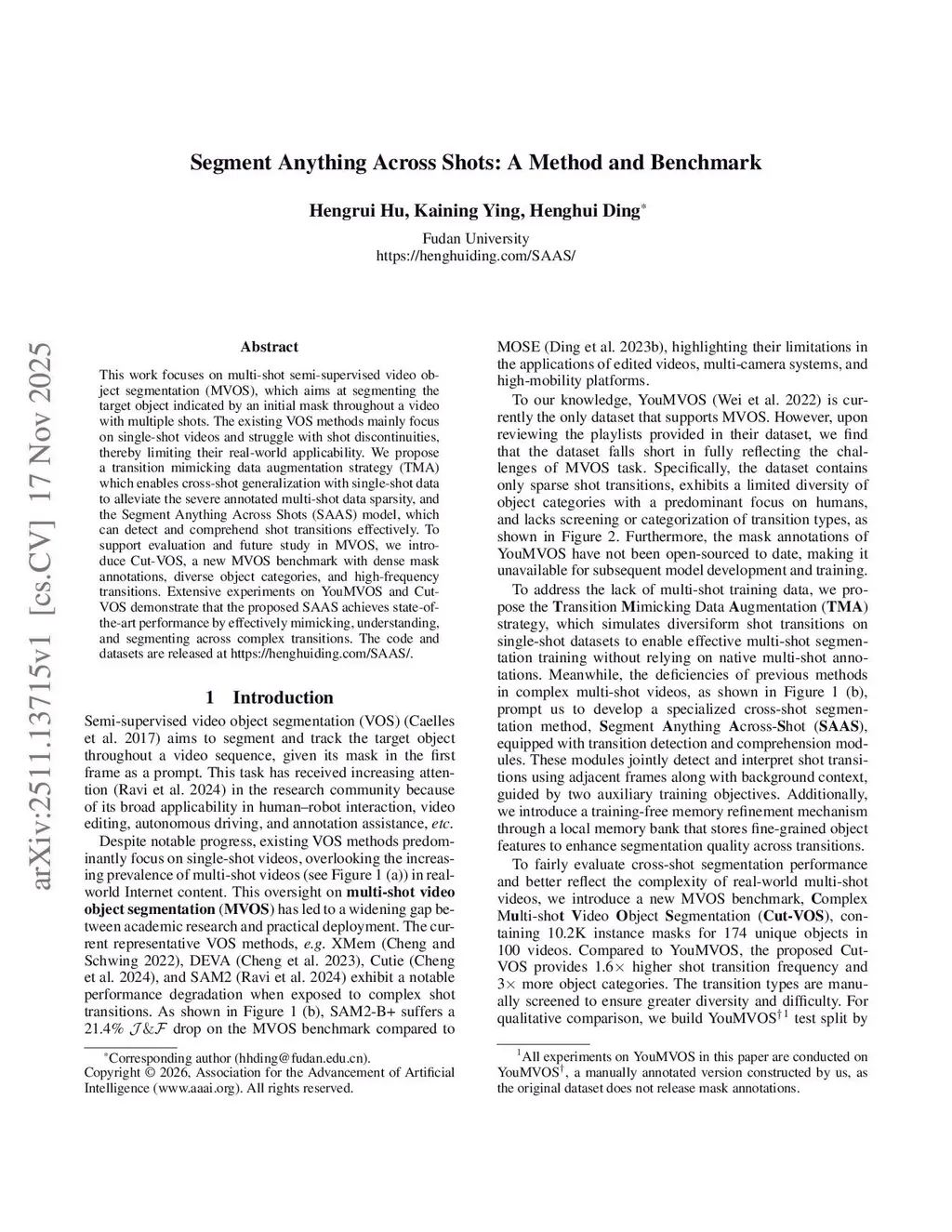 Segment Anything Across Shots: A Method and Benchmark