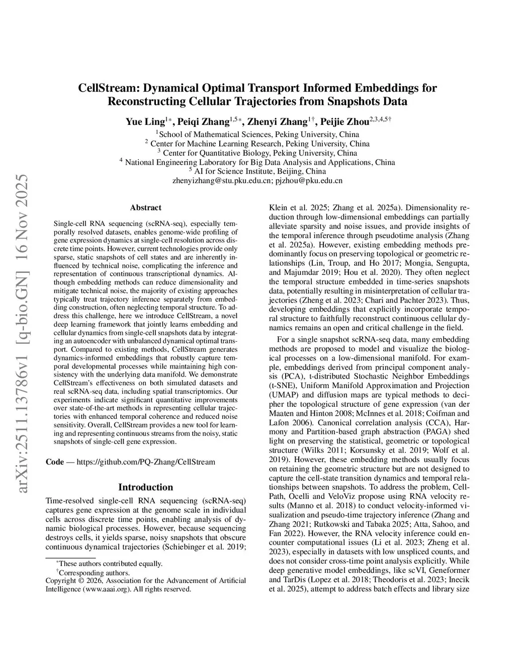 CellStream: Dynamical Optimal Transport Informed Embeddings for Reconstructing Cellular Trajectories from Snapshots Data
