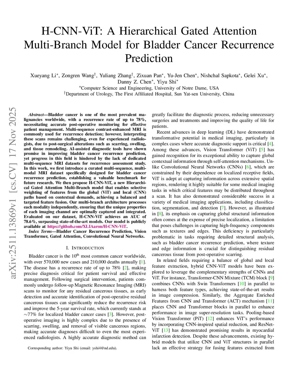 H-CNN-ViT: A Hierarchical Gated Attention Multi-Branch Model for Bladder Cancer Recurrence Prediction