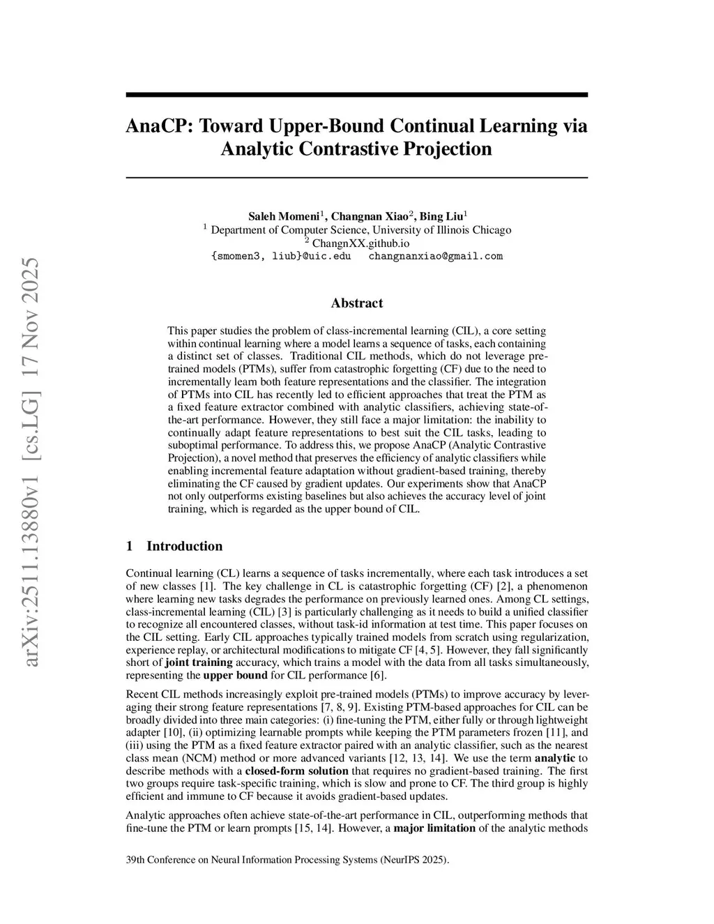 AnaCP: Toward Upper-Bound Continual Learning via Analytic Contrastive Projection