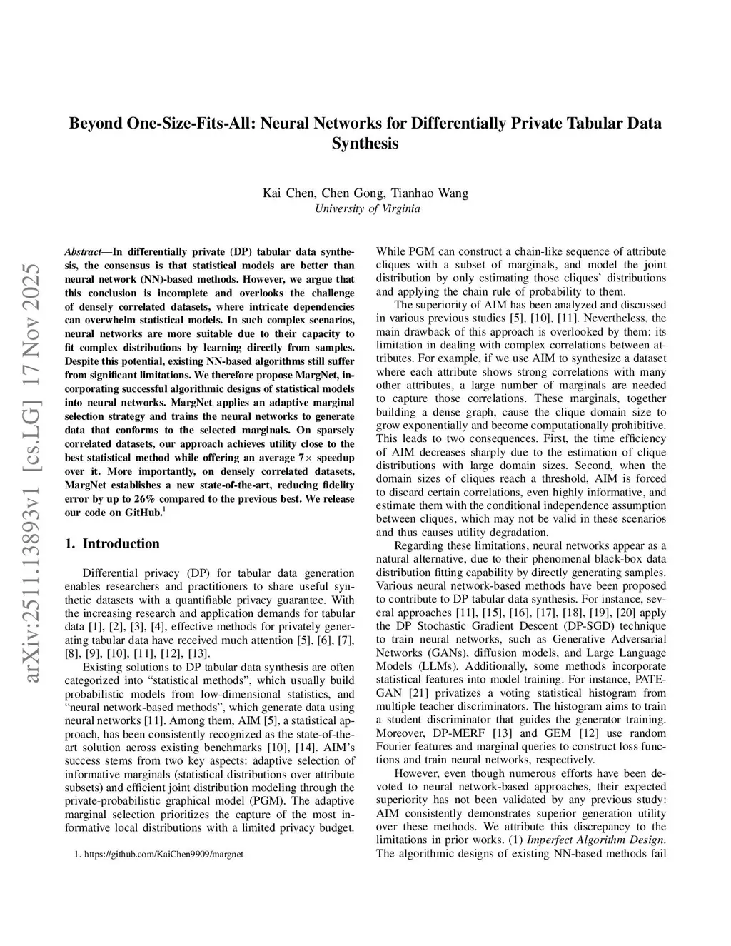 Beyond One-Size-Fits-All: Neural Networks for Differentially Private Tabular Data Synthesis