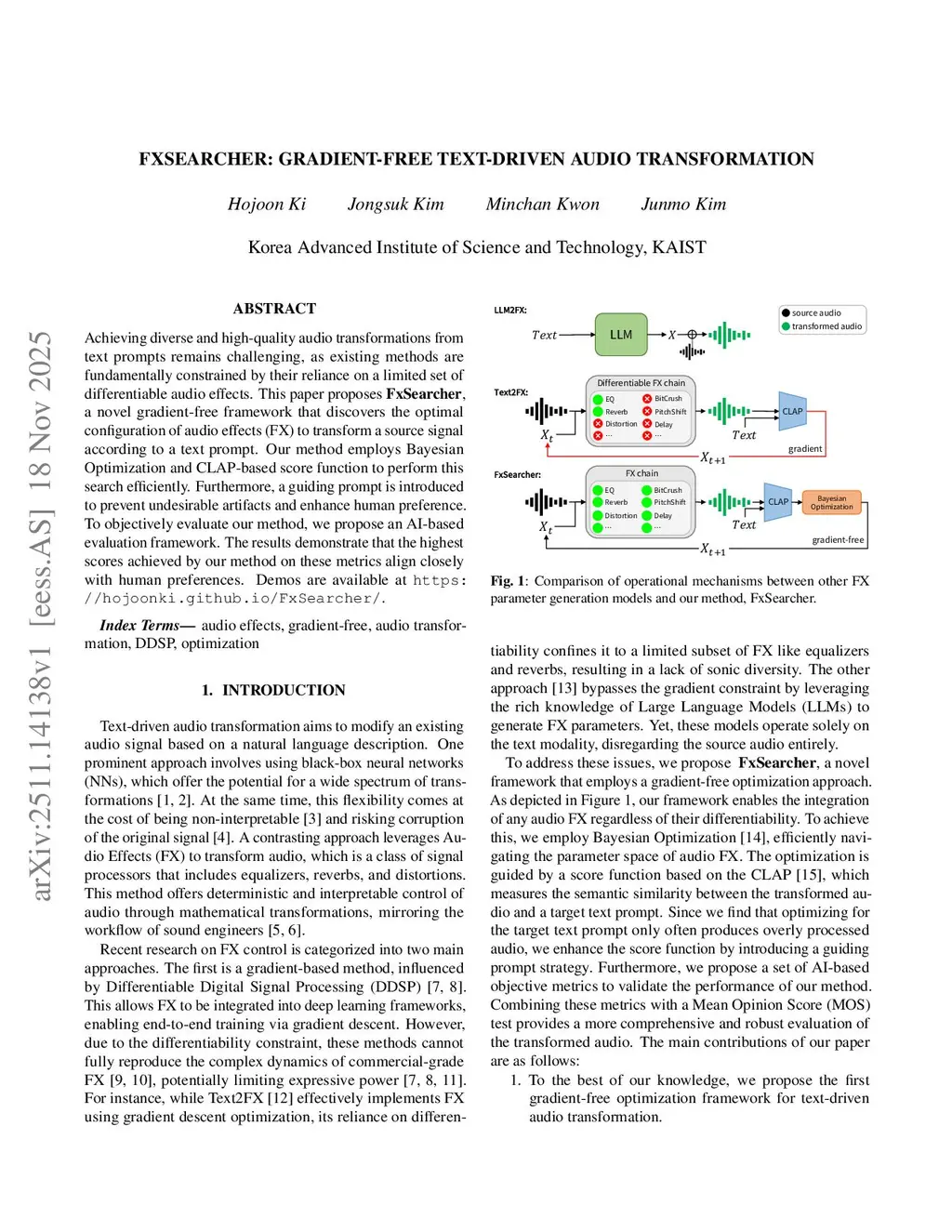 Achieving diverse and high-quality audio transformations from text prompts remains challenging, as existing methods are fundamentally constrained by their reliance on a limited set of differentiable audio effects. This paper proposes FxSearcher, a novel gradient-free framework that discovers the optimal configuration of audio effects (FX) to transform a source signal according to a text prompt. Our method employs Bayesian Optimization and CLAP-based score function to perform this search efficiently. Furthermore, a guiding prompt is introduced to prevent undesirable artifacts and enhance human preference. To objectively evaluate our method, we propose an AI-based evaluation framework. The results demonstrate that the highest scores achieved by our method on these metrics align closely with human preferences. Demos are available atthis https URL
