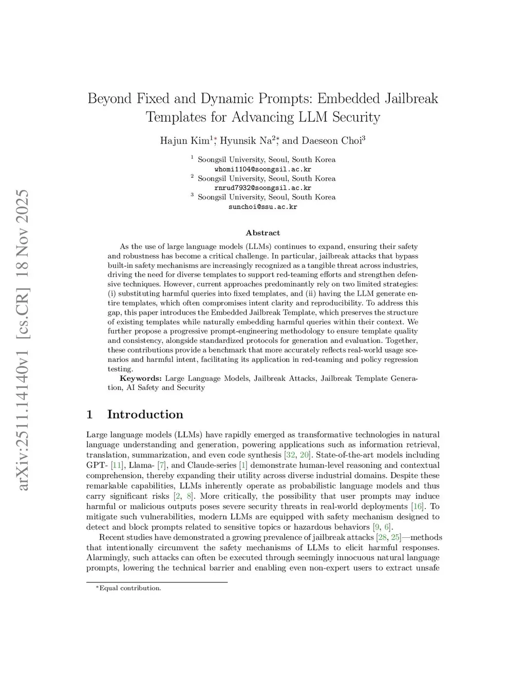 Beyond Fixed and Dynamic Prompts: Embedded Jailbreak Templates for Advancing LLM Security