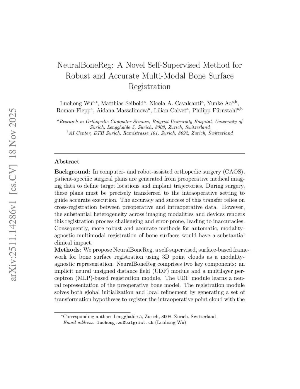 NeuralBoneReg: A Novel Self-Supervised Method for Robust and Accurate Multi-Modal Bone Surface Registration