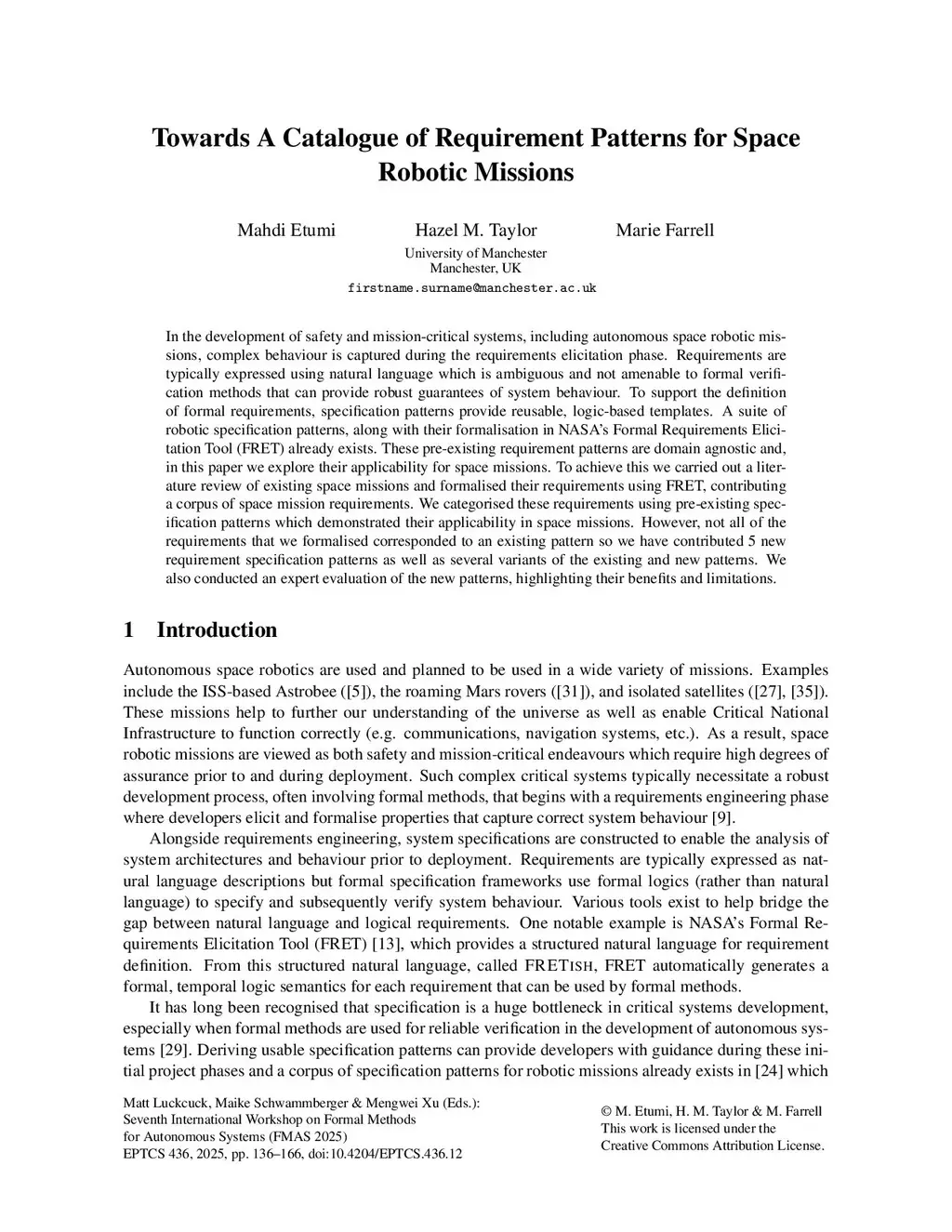Towards A Catalogue of Requirement Patterns for Space Robotic Missions