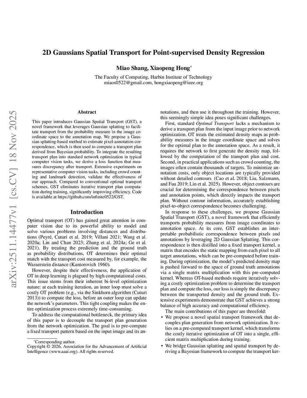 2D Gaussians Spatial Transport for Point-supervised Density Regression