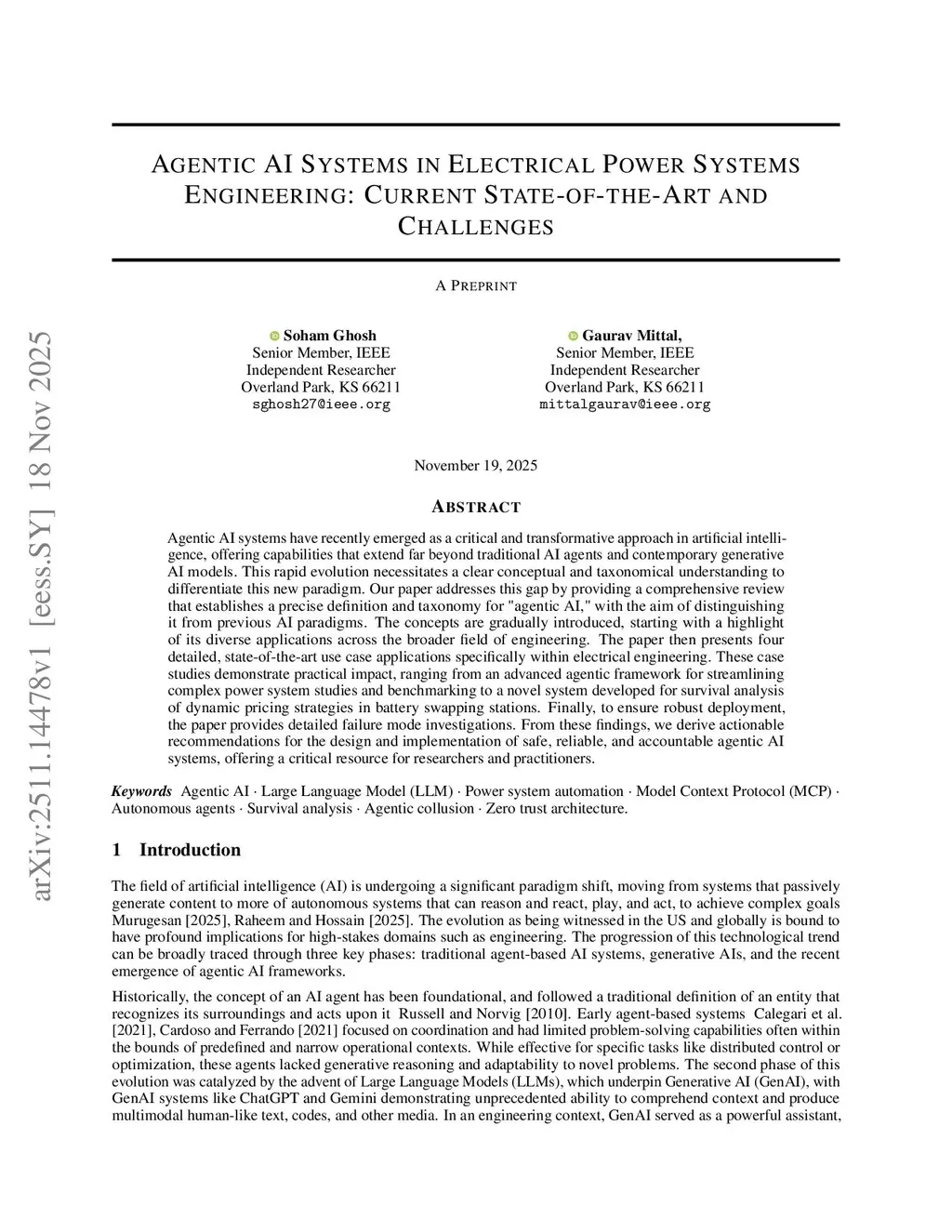 Agentic AI systems have recently emerged as a critical and transformative approach in artificial intelligence, offering capabilities that extend far beyond traditional AI agents and contemporary generative AI models. This rapid evolution necessitates a clear conceptual and taxonomical understanding to differentiate this new paradigm. Our paper addresses this gap by providing a comprehensive review that establishes a precise definition and taxonomy for "agentic AI," with the aim of distinguishing it from previous AI paradigms. The concepts are gradually introduced, starting with a highlight of its diverse applications across the broader field of engineering. The paper then presents four detailed, state-of-the-art use case applications specifically within electrical engineering. These case studies demonstrate practical impact, ranging from an advanced agentic framework for streamlining complex power system studies and benchmarking to a novel system developed for survival analysis of dynamic pricing strategies in battery swapping stations. Finally, to ensure robust deployment, the paper provides detailed failure mode investigations. From these findings, we derive actionable recommendations for the design and implementation of safe, reliable, and accountable agentic AI systems, offering a critical resource for researchers and practitioners.