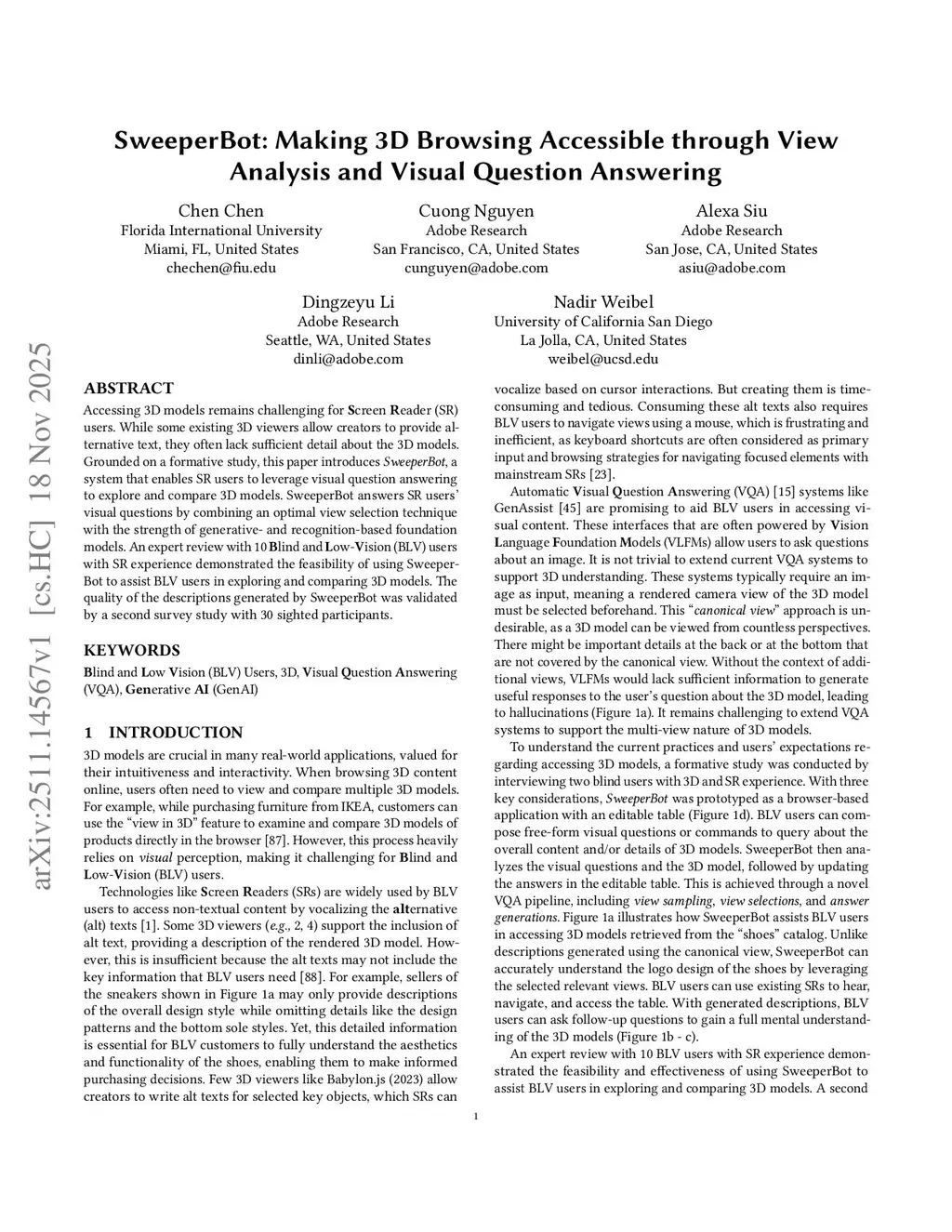SweeperBot: Making 3D Browsing Accessible through View Analysis and Visual Question Answering