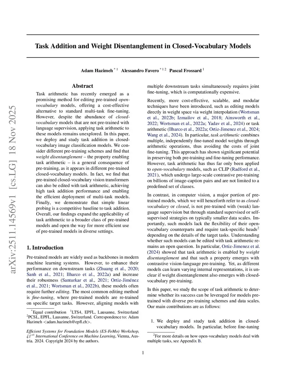 Task Addition and Weight Disentanglement in Closed-Vocabulary Models