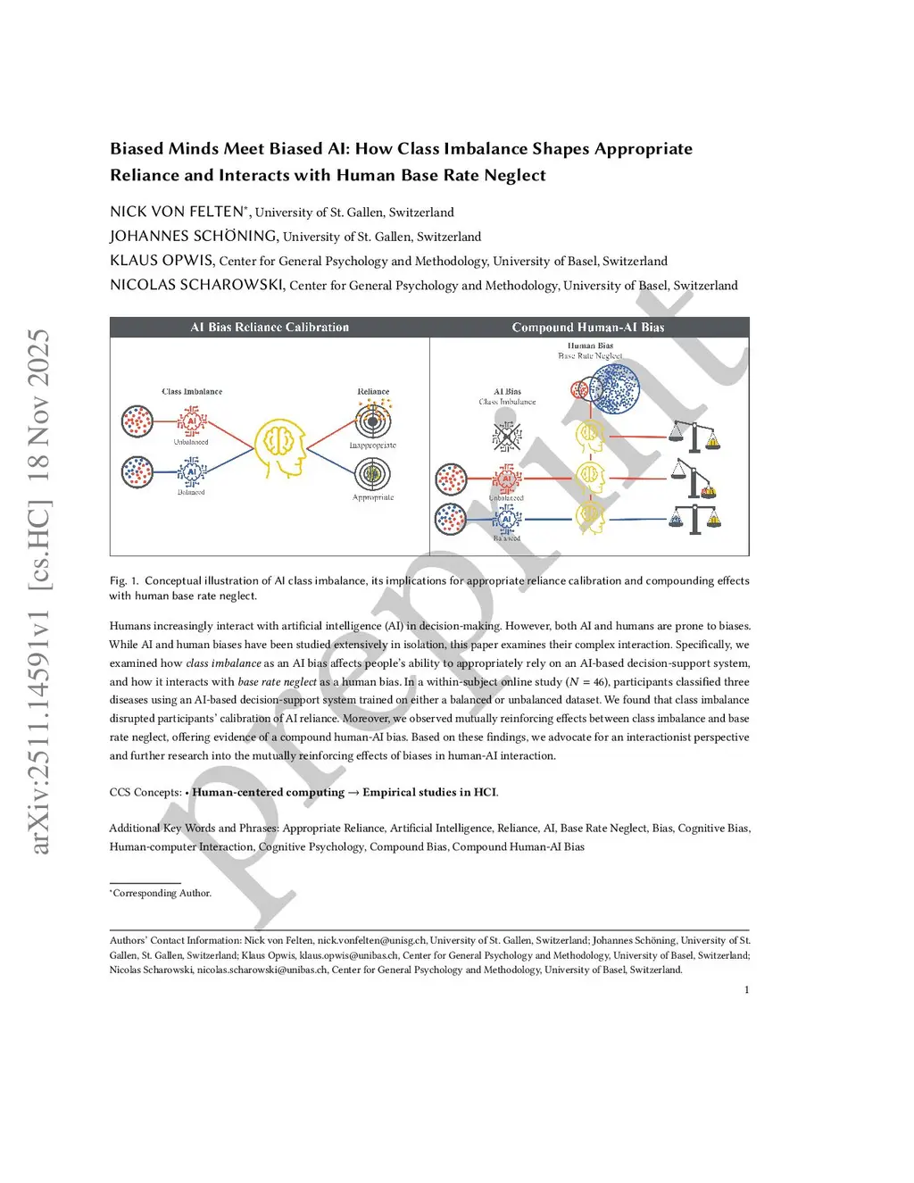 Humans increasingly interact with artificial intelligence (AI) in decision-making. However, both AI and humans are prone to biases. While AI and human biases have been studied extensively in isolation, this paper examines their complex interaction. Specifically, we examined how class imbalance as an AI bias affects people's ability to appropriately rely on an AI-based decision-support system, and how it interacts with base rate neglect as a human bias. In a within-subject online study (N= 46), participants classified three diseases using an AI-based decision-support system trained on either a balanced or unbalanced dataset. We found that class imbalance disrupted participants' calibration of AI reliance. Moreover, we observed mutually reinforcing effects between class imbalance and base rate neglect, offering evidence of a compound human-AI bias. Based on these findings, we advocate for an interactionist perspective and further research into the mutually reinforcing effects of biases in human-AI interaction.