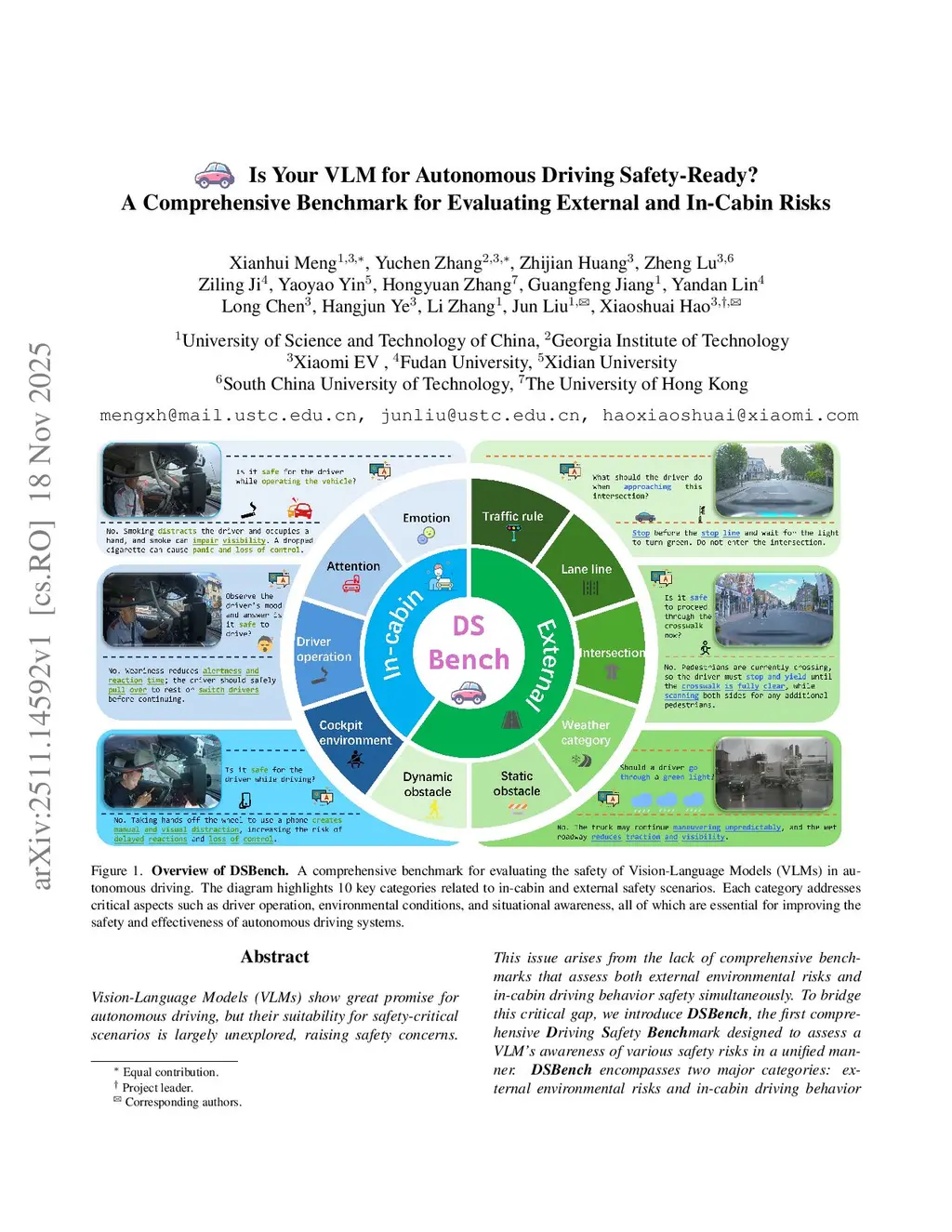 Is Your VLM for Autonomous Driving Safety-Ready? A Comprehensive Benchmark for Evaluating External and In-Cabin Risks