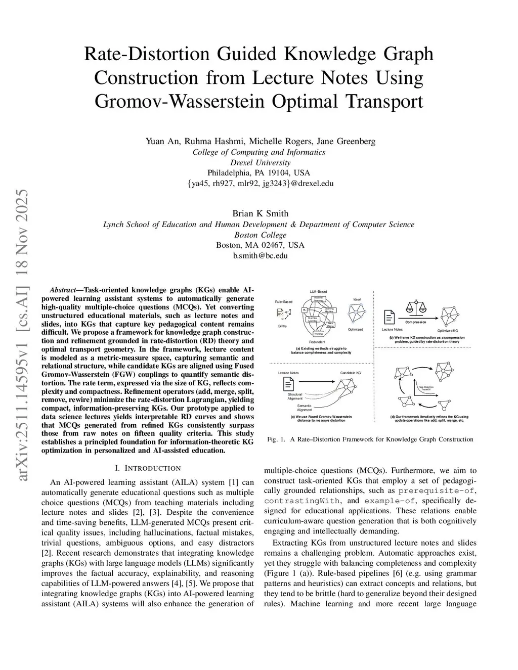 Rate-Distortion Guided Knowledge Graph Construction from Lecture Notes Using Gromov-Wasserstein Optimal Transport