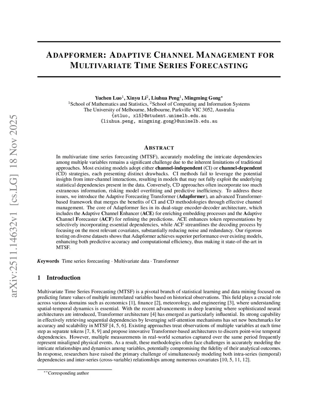 Adapformer: Adaptive Channel Management for Multivariate Time Series Forecasting