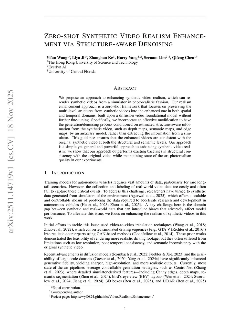 Zero-shot Synthetic Video Realism Enhancement via Structure-aware Denoising