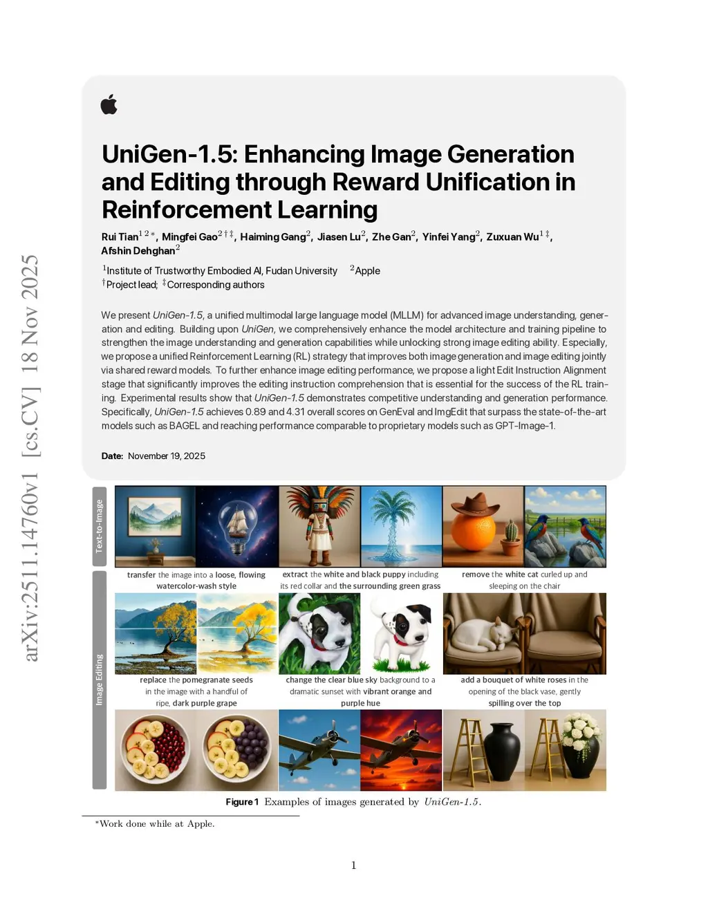 UniGen-1.5: Enhancing Image Generation and Editing through Reward Unification in Reinforcement Learning