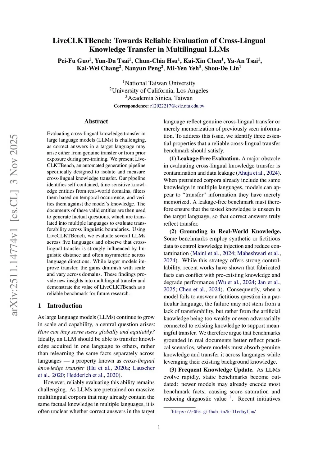 Evaluating cross-lingual knowledge transfer in large language models is challenging, as correct answers in a target language may arise either from genuine transfer or from prior exposure during pre-training. We present LiveCLKTBench, an automated generation pipeline specifically designed to isolate and measure cross-lingual knowledge transfer. Our pipeline identifies self-contained, time-sensitive knowledge entities from real-world domains, filters them based on temporal occurrence, and verifies them against the model's knowledge. The documents of these valid entities are then used to generate factual questions, which are translated into multiple languages to evaluate transferability across linguistic boundaries. Using LiveCLKTBench, we evaluate several LLMs across five languages and observe that cross-lingual transfer is strongly influenced by linguistic distance and often asymmetric across language directions. While larger models improve transfer, the gains diminish with scale and vary across domains. These findings provide new insights into multilingual transfer and demonstrate the value of LiveCLKTBench as a reliable benchmark for future research.