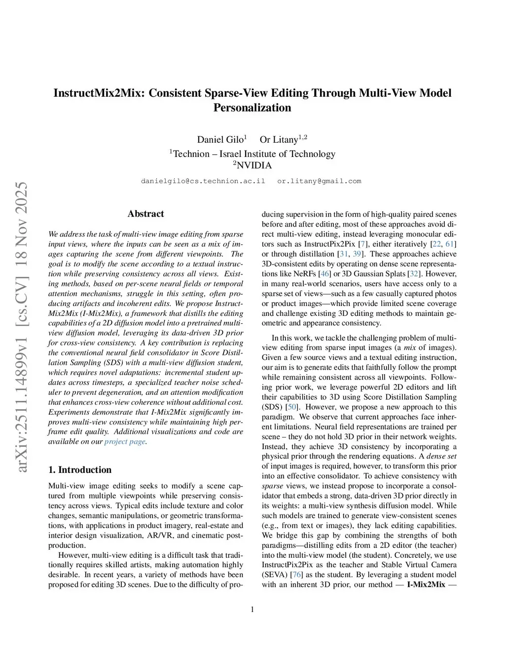 We address the task of multi-view image editing from sparse input views, where the inputs can be seen as a mix of images capturing the scene from different viewpoints. The goal is to modify the scene according to a textual instruction while preserving consistency across all views. Existing methods, based on per-scene neural fields or temporal attention mechanisms, struggle in this setting, often producing artifacts and incoherent edits. We propose InstructMix2Mix (I-Mix2Mix), a framework that distills the editing capabilities of a 2D diffusion model into a pretrained multi-view diffusion model, leveraging its data-driven 3D prior for cross-view consistency. A key contribution is replacing the conventional neural field consolidator in Score Distillation Sampling (SDS) with a multi-view diffusion student, which requires novel adaptations: incremental student updates across timesteps, a specialized teacher noise scheduler to prevent degeneration, and an attention modification that enhances cross-view coherence without additional cost. Experiments demonstrate that I-Mix2Mix significantly improves multi-view consistency while maintaining high per-frame edit quality.