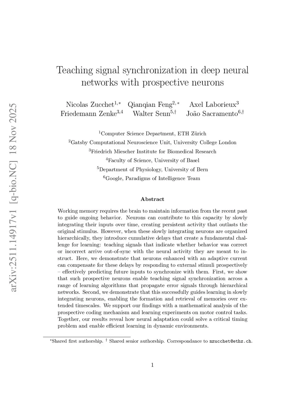 Teaching signal synchronization in deep neural networks with prospective neurons