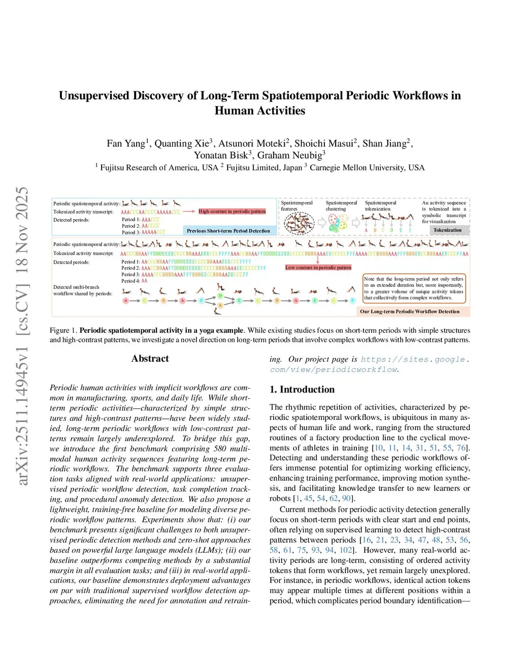 Periodic human activities with implicit workflows are common in manufacturing, sports, and daily life. While short-term periodic activities -- characterized by simple structures and high-contrast patterns -- have been widely studied, long-term periodic workflows with low-contrast patterns remain largely underexplored. To bridge this gap, we introduce the first benchmark comprising 580 multimodal human activity sequences featuring long-term periodic workflows. The benchmark supports three evaluation tasks aligned with real-world applications: unsupervised periodic workflow detection, task completion tracking, and procedural anomaly detection. We also propose a lightweight, training-free baseline for modeling diverse periodic workflow patterns. Experiments show that: (i) our benchmark presents significant challenges to both unsupervised periodic detection methods and zero-shot approaches based on powerful large language models (LLMs); (ii) our baseline outperforms competing methods by a substantial margin in all evaluation tasks; and (iii) in real-world applications, our baseline demonstrates deployment advantages on par with traditional supervised workflow detection approaches, eliminating the need for annotation and retraining. Our project page isthis https URL.