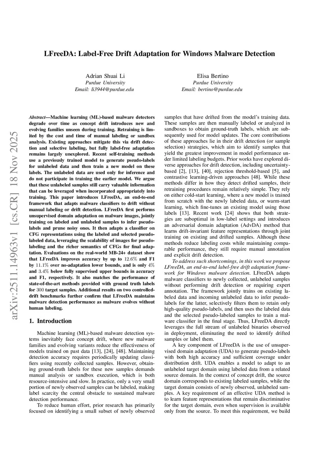 LFreeDA: Label-Free Drift Adaptation for Windows Malware Detection