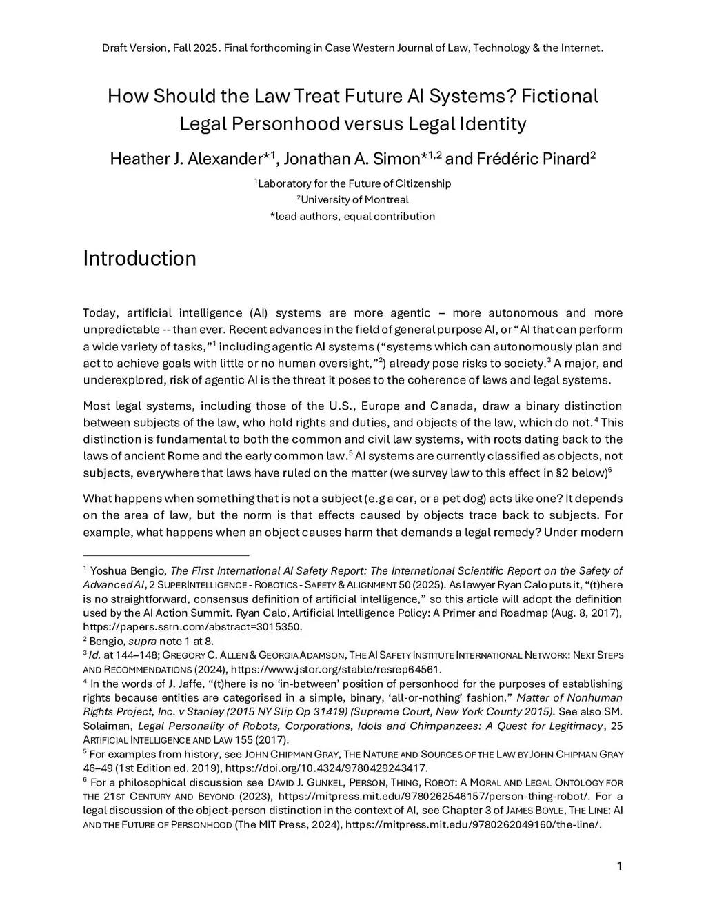 The law draws a sharp distinction between objects and persons, and between two kinds of persons, the ''fictional'' kind (i.e. corporations), and the 'ñon-fictional'' kind (individual or 'ñatural'' persons). This paper will assess whether we maximize overall long-term legal coherence by (A) maintaining an object classification for all future AI systems, (B) creating fictional legal persons associated with suitably advanced, individuated AI systems (giving these fictional legal persons derogable rights and duties associated with certified groups of existing persons, potentially including free speech, contract rights, and standing to sue 'ón behalf of'' the AI system), or (C) recognizing non-fictional legal personhood through legal identity for suitably advanced, individuated AI systems (recognizing them as entities meriting legal standing with non-derogable rights which for the human case include life, due process, habeas corpus, freedom from slavery, and freedom of conscience). We will clarify the meaning and implications of each option along the way, considering liability, copyright, family law, fundamental rights, civil rights, citizenship, and AI safety regulation. We will tentatively find that the non-fictional personhood approach may be best from a coherence perspective, for at least some advanced AI systems. An object approach may prove untenable for sufficiently humanoid advanced systems, though we suggest that it is adequate for currently existing systems as of 2025. While fictional personhood would resolve some coherence issues for future systems, it would create others and provide solutions that are neither durable nor fit for purpose. Finally, our review will suggest that ''hybrid'' approaches are likely to fail and lead to further incoherence: the choice between object, fictional person and non-fictional person is unavoidable.