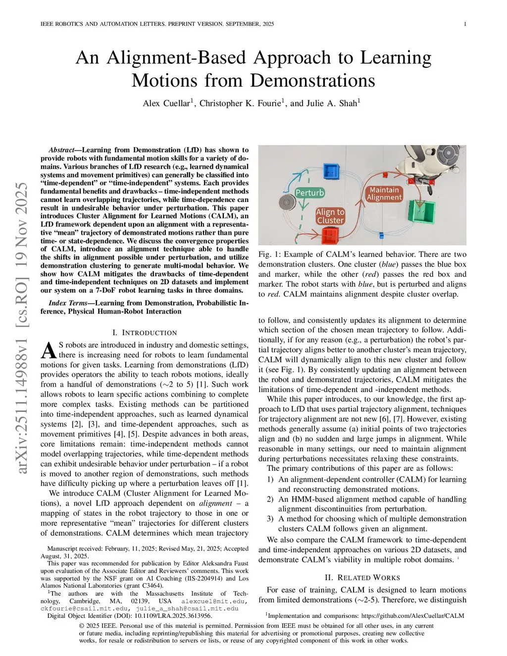 Learning from Demonstration (LfD) has shown to provide robots with fundamental motion skills for a variety of domains. Various branches of LfD research (e.g., learned dynamical systems and movement primitives) can generally be classified into ''time-dependent'' or ''time-independent'' systems. Each provides fundamental benefits and drawbacks -- time-independent methods cannot learn overlapping trajectories, while time-dependence can result in undesirable behavior under perturbation. This paper introduces Cluster Alignment for Learned Motions (CALM), an LfD framework dependent upon an alignment with a representative ''mean" trajectory of demonstrated motions rather than pure time- or state-dependence. We discuss the convergence properties of CALM, introduce an alignment technique able to handle the shifts in alignment possible under perturbation, and utilize demonstration clustering to generate multi-modal behavior. We show how CALM mitigates the drawbacks of time-dependent and time-independent techniques on 2D datasets and implement our system on a 7-DoF robot learning tasks in three domains.