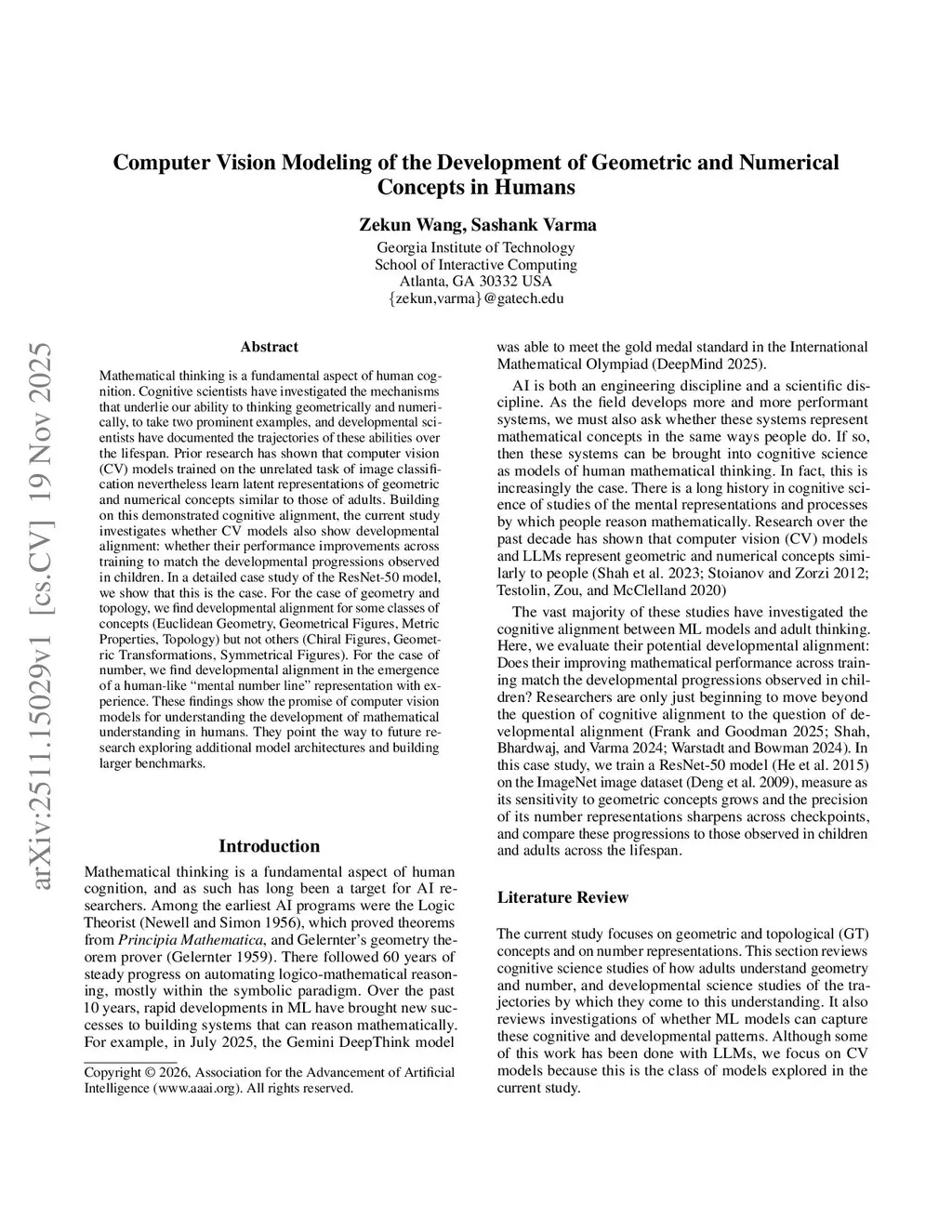 Computer Vision Modeling of the Development of Geometric and Numerical Concepts in Humans