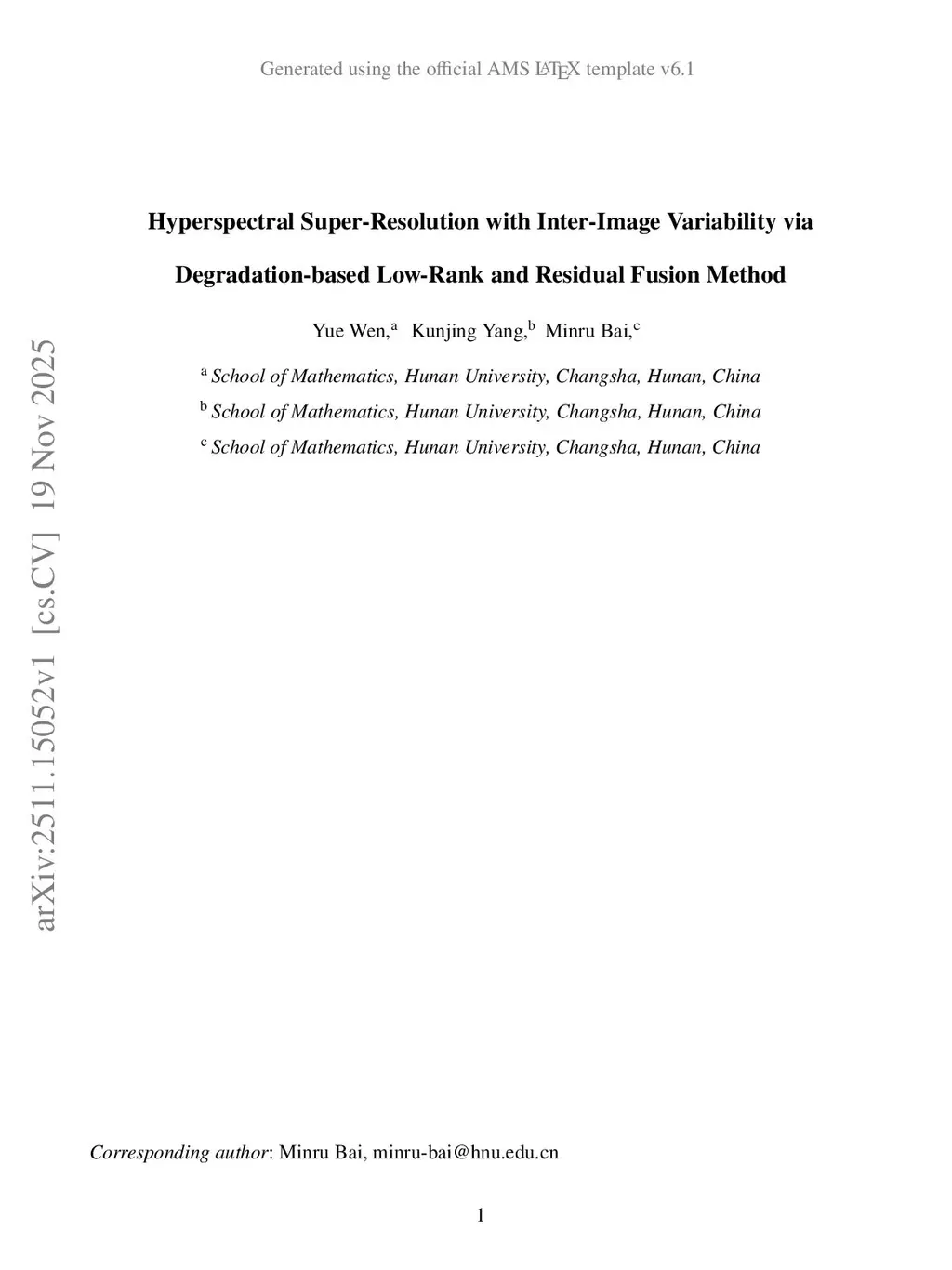 Hyperspectral Super-Resolution with Inter-Image Variability via Degradation-based Low-Rank and Residual Fusion Method