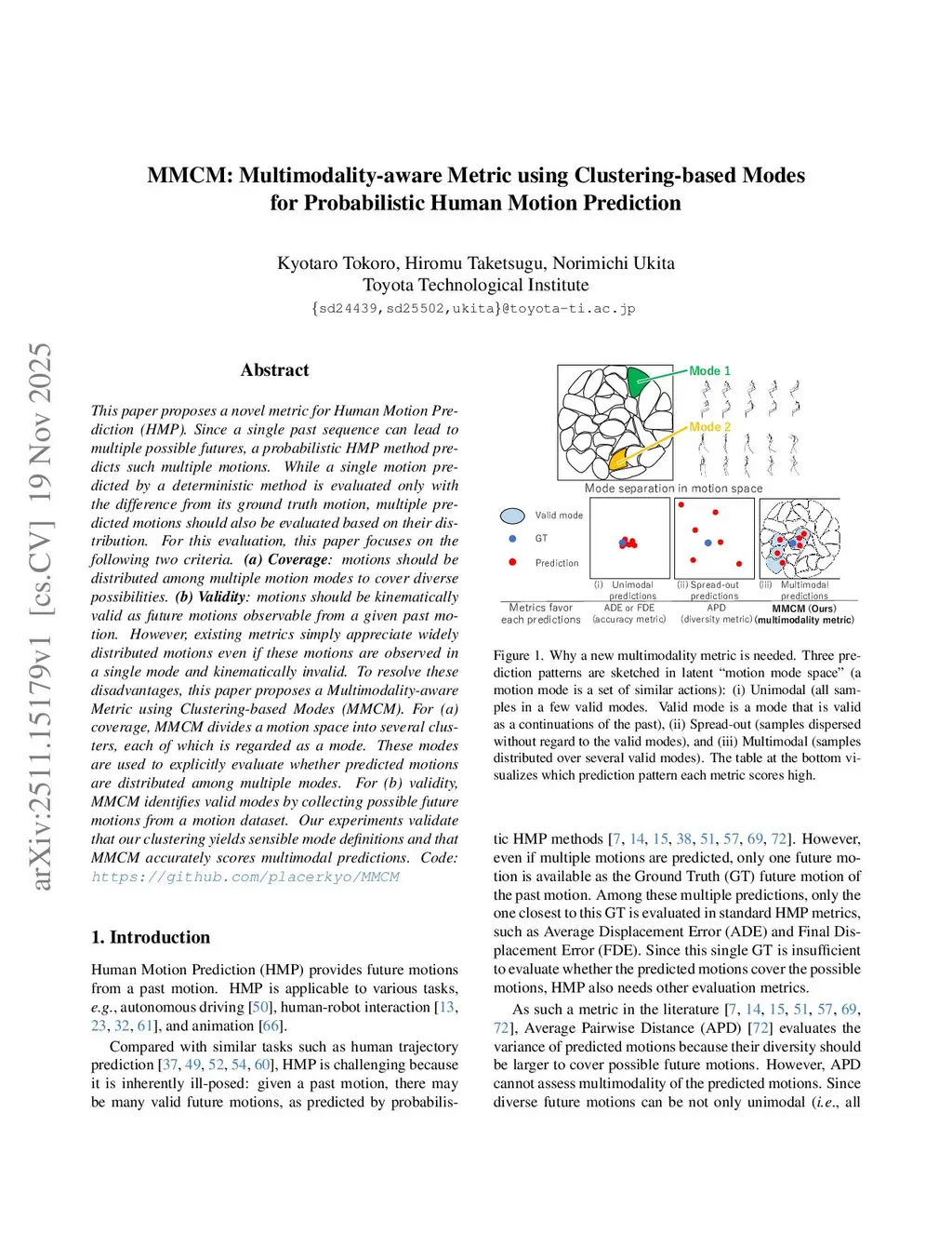 MMCM: Multimodality-aware Metric using Clustering-based Modes for Probabilistic Human Motion Prediction