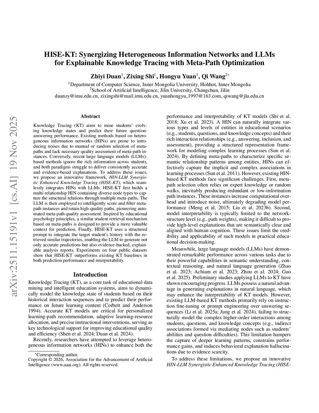 HISE-KT: Synergizing Heterogeneous Information Networks and LLMs for Explainable Knowledge Tracing with Meta-Path Optimization