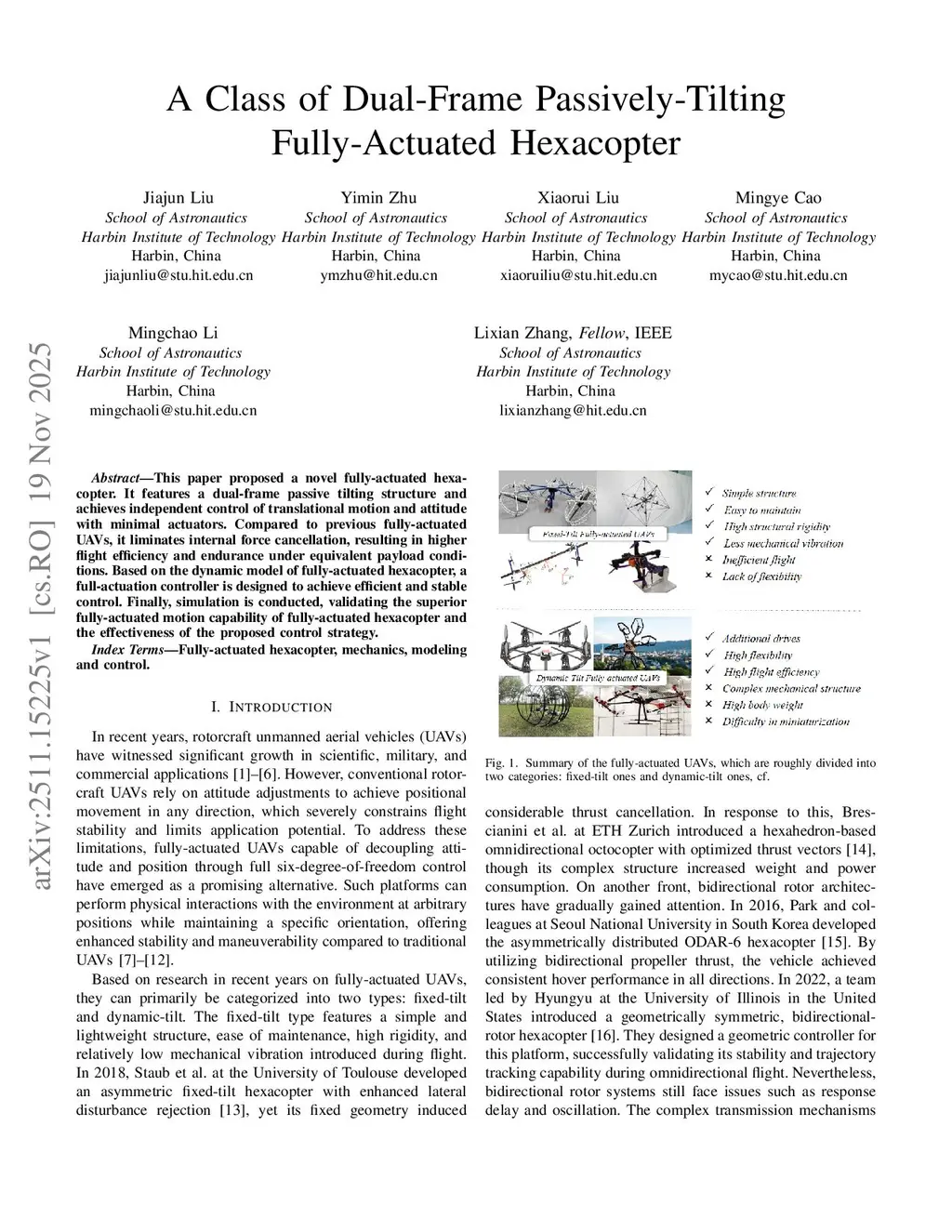 A Class of Dual-Frame Passively-Tilting Fully-Actuated Hexacopter