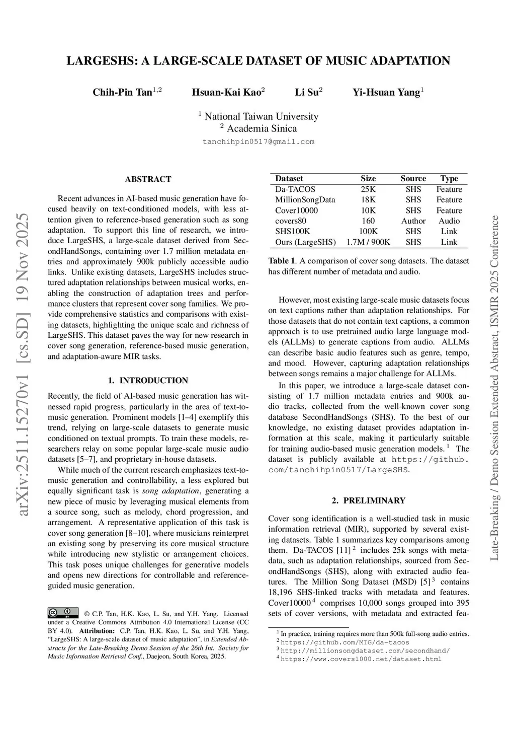 Recent advances in AI-based music generation have focused heavily on text-conditioned models, with less attention given to reference-based generation such as song adaptation. To support this line of research, we introduce LargeSHS, a large-scale dataset derived from SecondHandSongs, containing over 1.7 million metadata entries and approximately 900k publicly accessible audio links. Unlike existing datasets, LargeSHS includes structured adaptation relationships between musical works, enabling the construction of adaptation trees and performance clusters that represent cover song families. We provide comprehensive statistics and comparisons with existing datasets, highlighting the unique scale and richness of LargeSHS. This dataset paves the way for new research in cover song generation, reference-based music generation, and adaptation-aware MIR tasks.