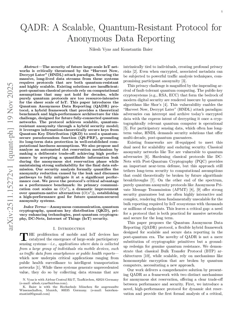 QADR: A Scalable, Quantum-Resistant Protocol for Anonymous Data Reporting