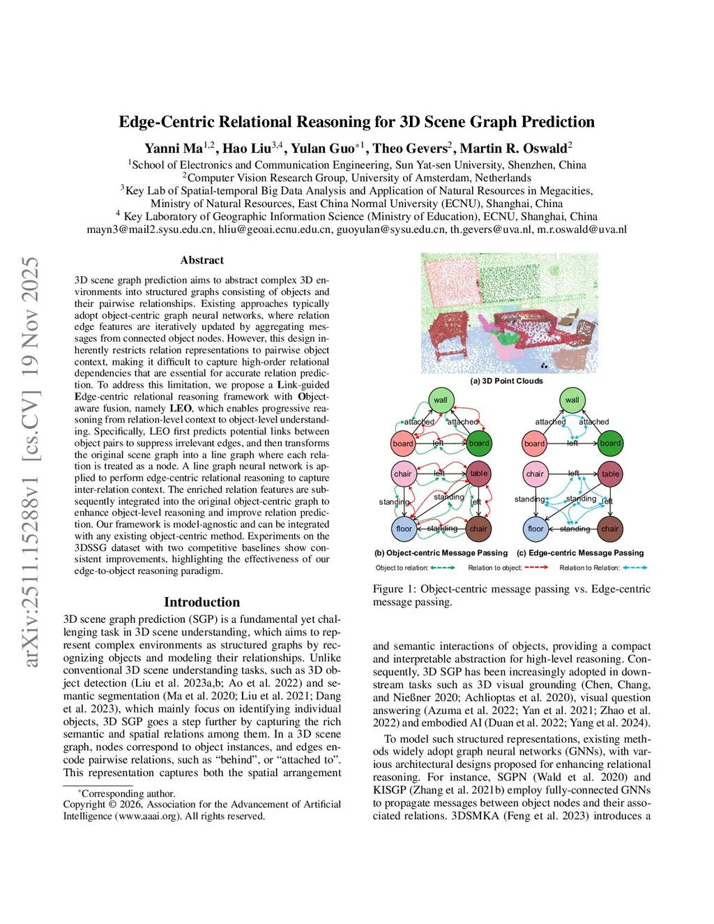Edge-Centric Relational Reasoning for 3D Scene Graph Prediction