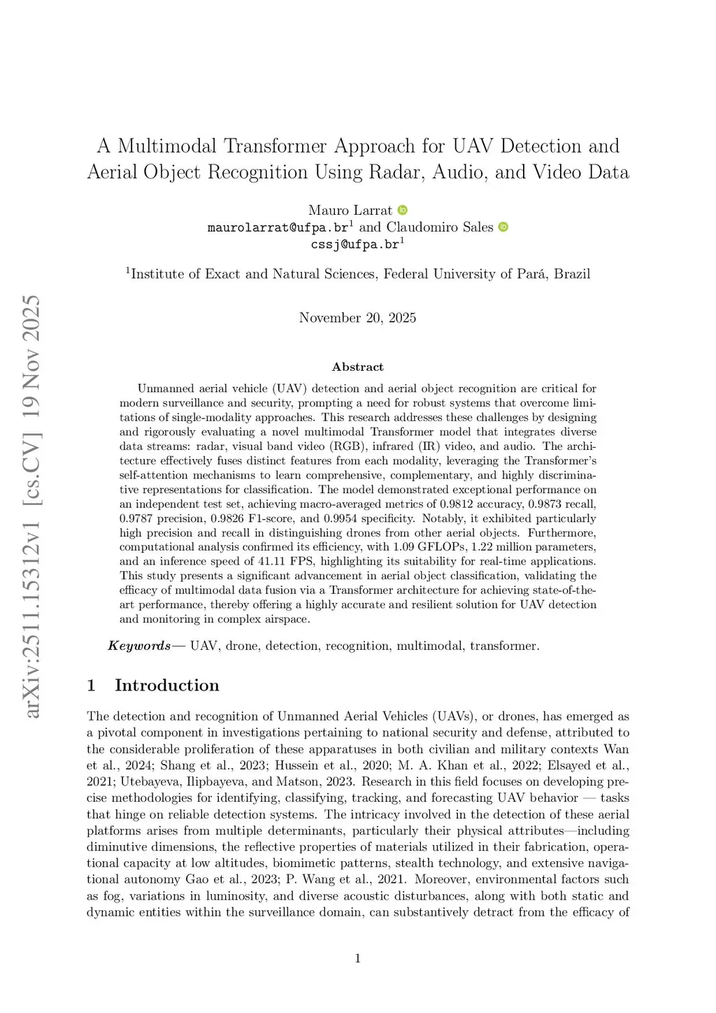 A Multimodal Transformer Approach for UAV Detection and Aerial Object Recognition Using Radar, Audio, and Video Data