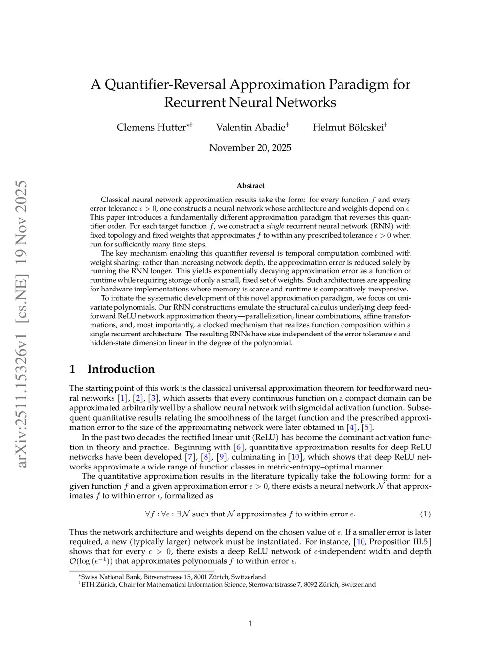 A Quantifier-Reversal Approximation Paradigm for Recurrent Neural Networks