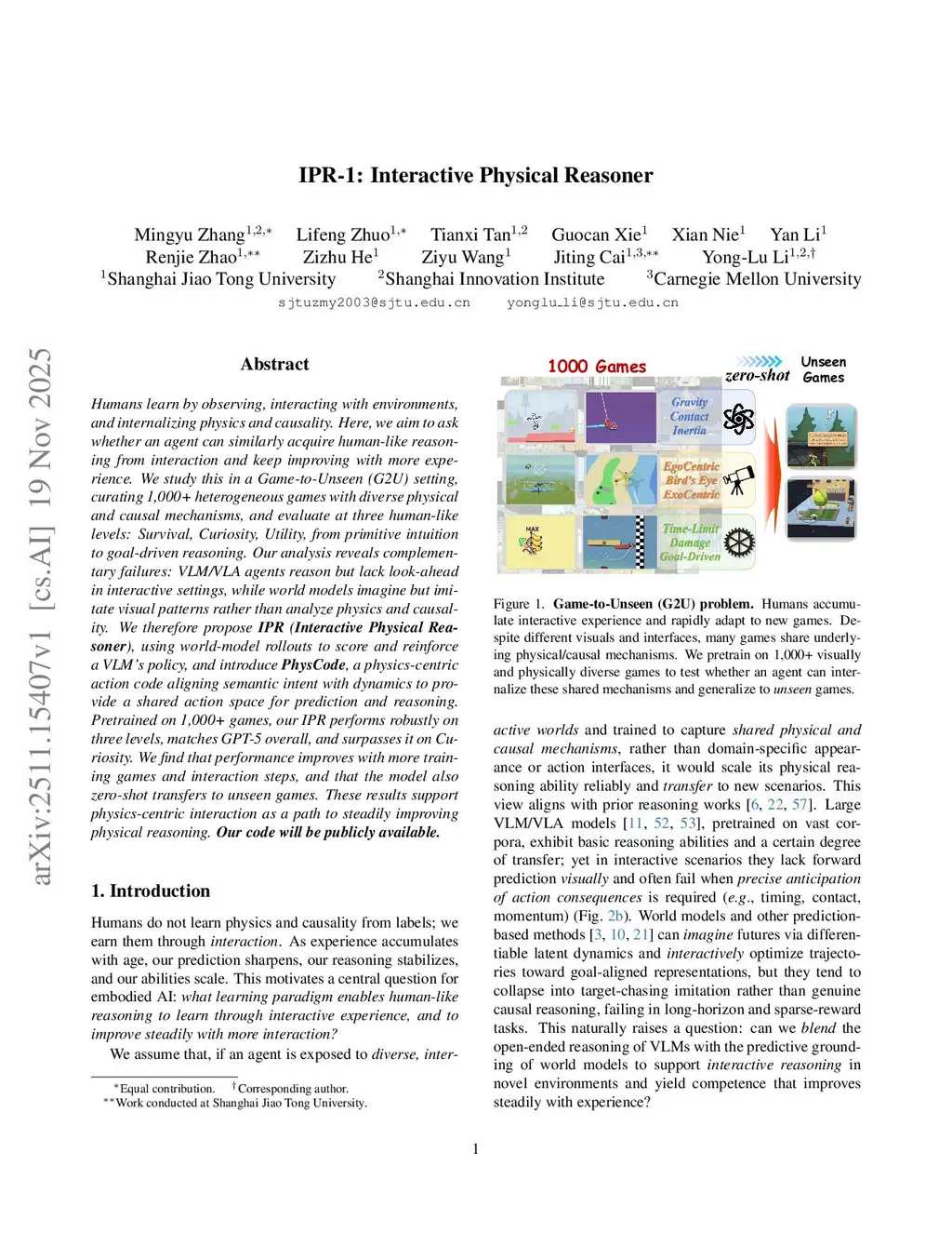 IPR-1: Interactive Physical Reasoner
