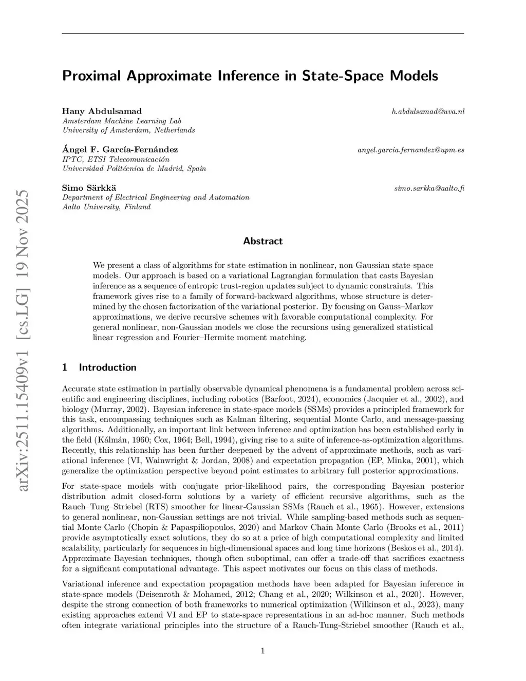 Proximal Approximate Inference in State-Space Models
