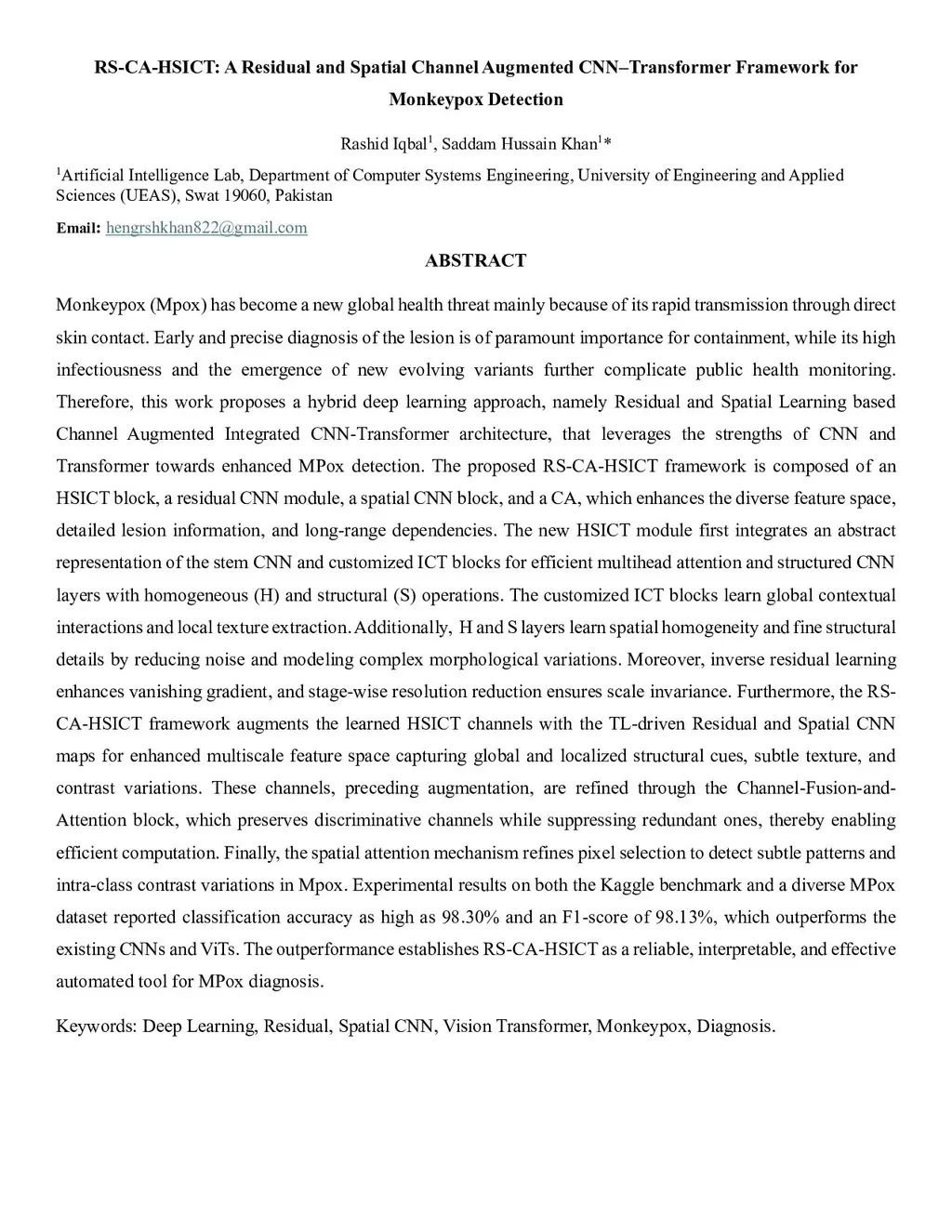 RS-CA-HSICT: A Residual and Spatial Channel Augmented CNN Transformer Framework for Monkeypox Detection