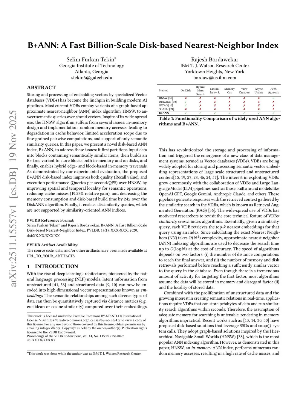 B+ANN: A Fast Billion-Scale Disk-based Nearest-Neighbor Index